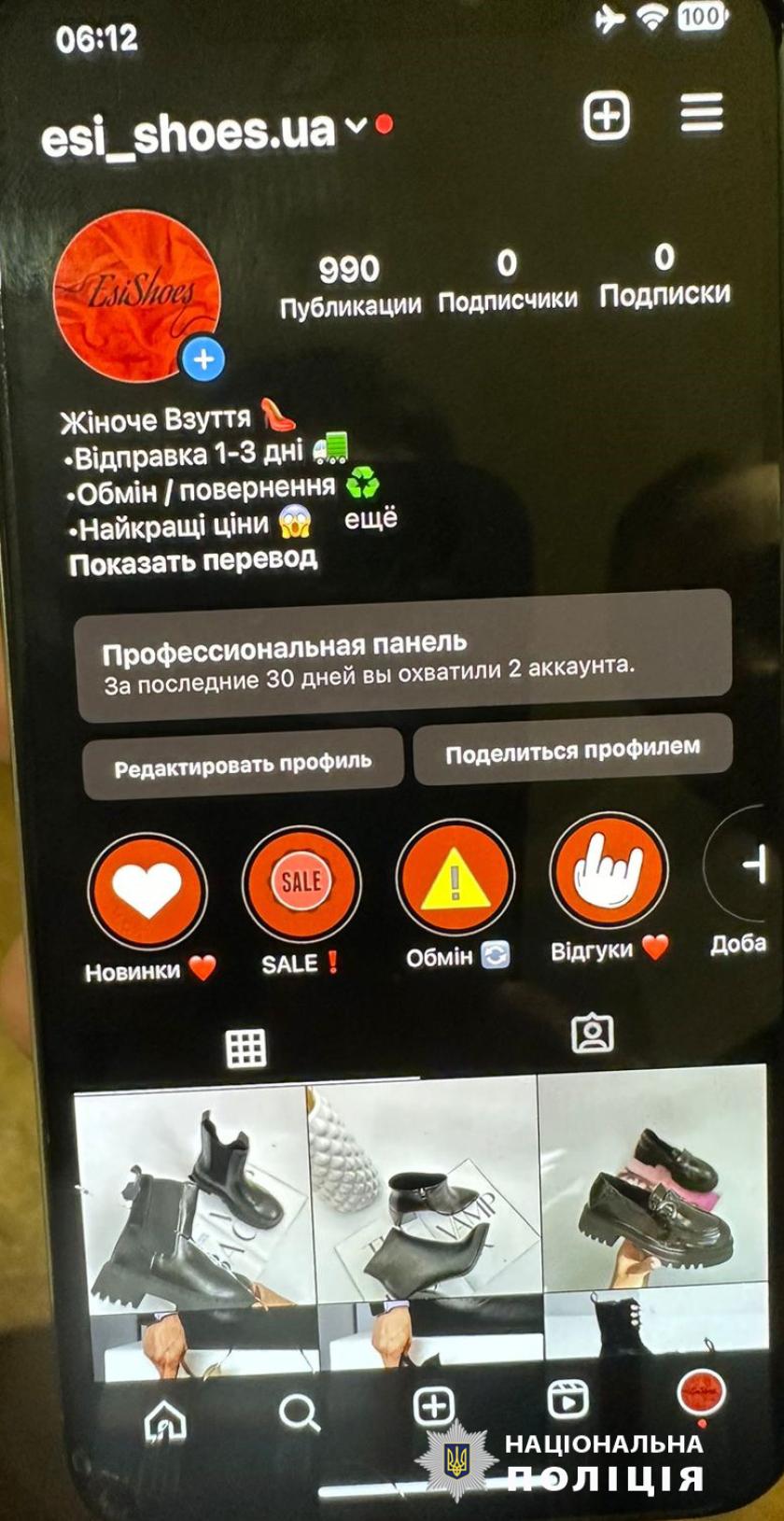 В полицию обратилась женщина и сообщила, что неизвестные обманули ее на 800 гривен. Она хотела купить обувь, перечислила им деньги, однако товар не получила. Следователи установили мошенников. Ими оказались двое мужчин 23 и 21 года и женщина 22 лет. Как выяснилось, молодые люди создавали в соцсети Instagram страницы для продажи несуществующих товаров. Известно, что они причастны к более чем 35 фактам мошенничества.