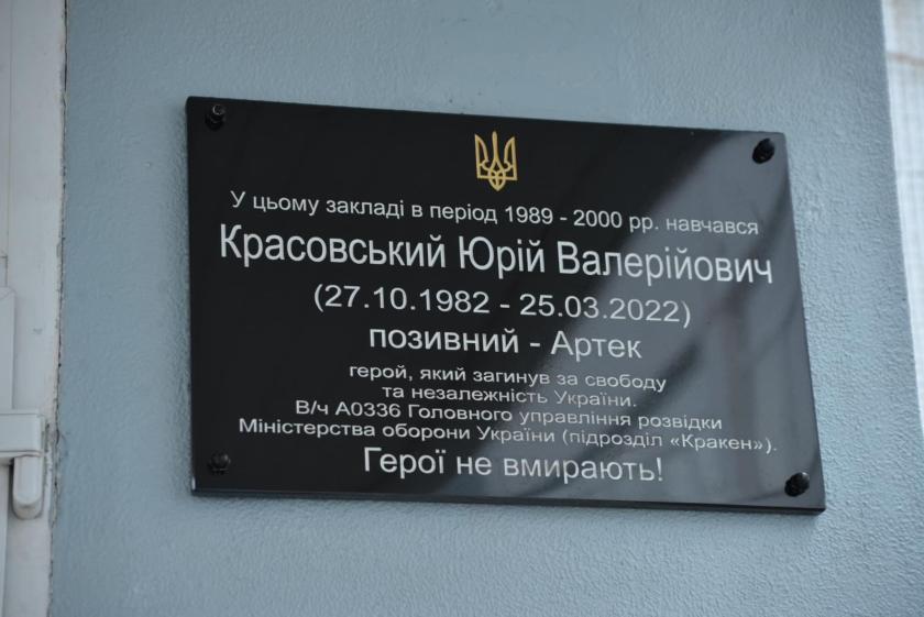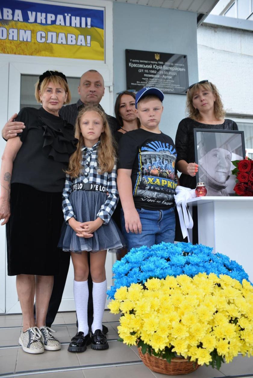 В частности, в Холодногорском районе на здании лицея №152 установлена доска в честь Юрия Красовского. Он защищал Украину с 2014 года, защищал Гнутово, Широкино и Мариуполь. Погиб во время штурма позиций российских захватчиков на подступах к Харькову. Это произошло 25 марта прошлого года.