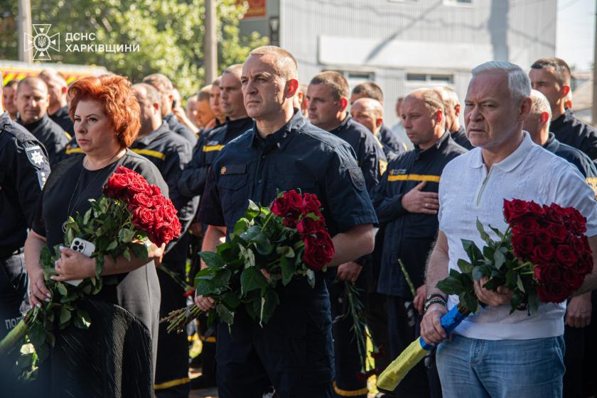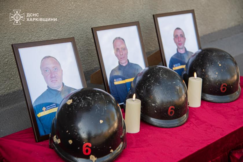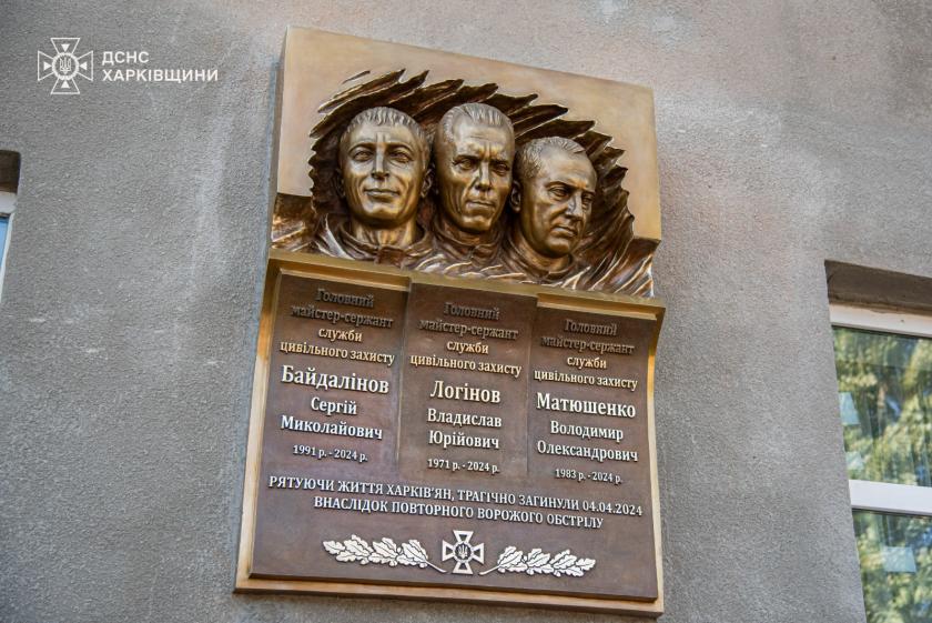 В понедельник 16 сентября в Харькове открыли мемориальную доску трем сотрудникам Главного управления Госслужбы Украины по чрезвычайным ситуациям в Харьковской области, погибшим 4 апреля во время повторной российской атаки по дому в Новобаварском районе. Это спасатели 6-й Государственной пожарно-спасательной части Владислав Логинов, Владимир Матюшенко и Сергей Байдалинов.