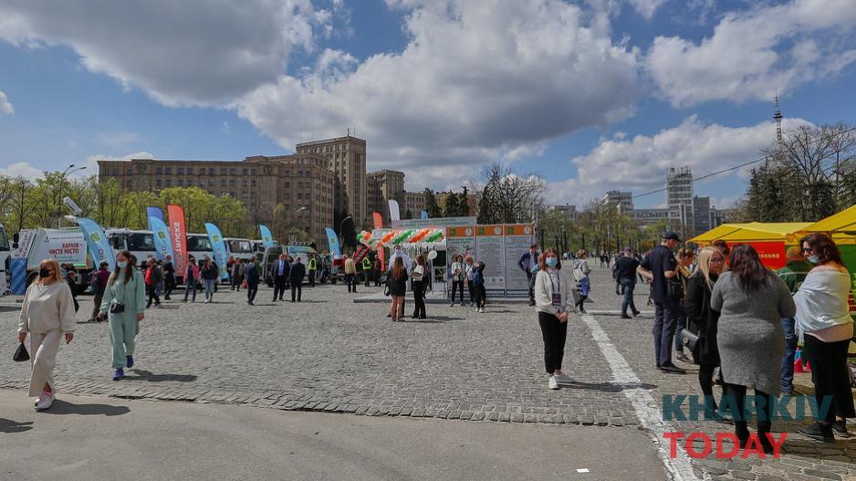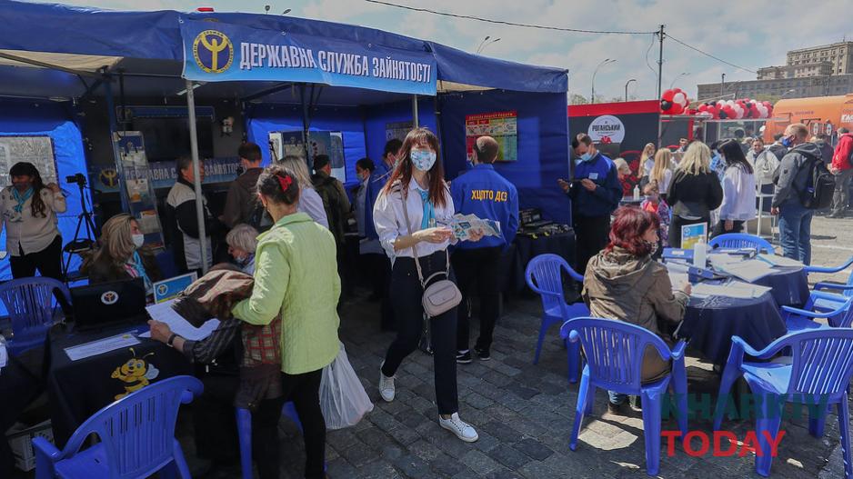 Рядом на площади Свободы проходила Ярмарка вакансий в честь Дня труда. В ней приняли участие представители 35 городских предприятий: частных, коммунальных и государственных.