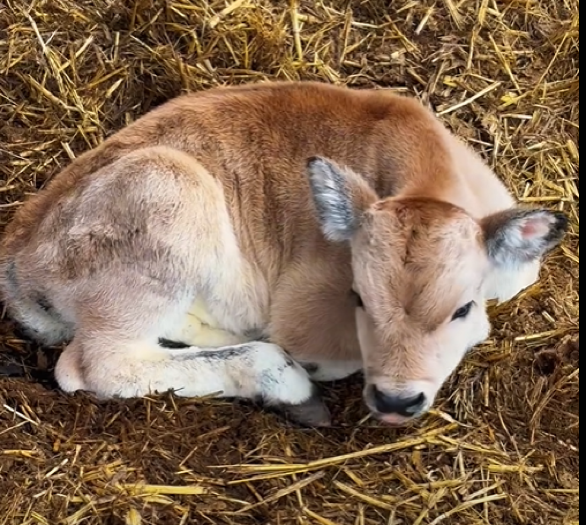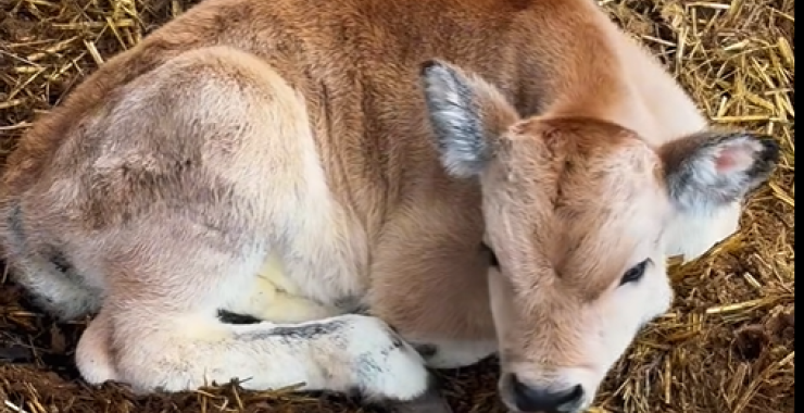 У Фельдман Экопарк пополнение – несколько дней назад родился бычок серой венгерской коровы.