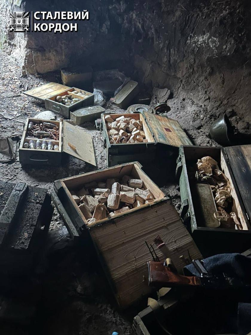 Бойцы 15-го мобильного пограничного отряда "Стальная граница" нашли в Харьковской области схрон с оружием и боеприпасами. Его сделали российские военные. Когда бежали минувшей осенью с территории региона, бросили арсенал.