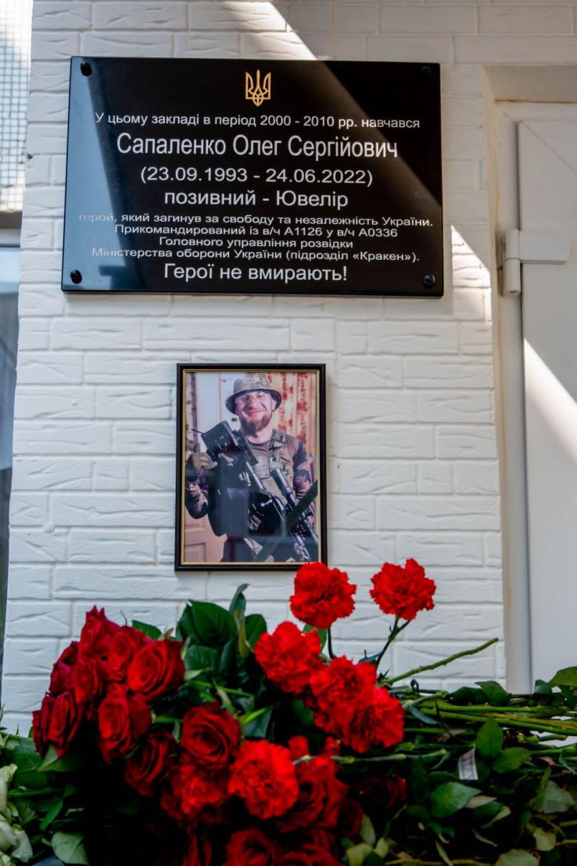 На фасаде лицея №73 в Немышлянском районе Харькова открыли мемориальную доску военному Олегу Сапаленко, погибшему на войне. На открытие доски пришла семья погибшего, побратимы, друзья, учителя, жители района и глава администрации Немышлянского района Татьяна Мироненко.