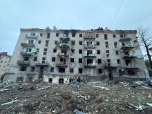 "Вечером были взрывы, и было повреждено здание общежития. Туда попала российская ракета, предварительно, С-300. Но, к счастью, не было таких больших разрушений. Пострадали двое мужчин. Их забрала карета скорой помощи. Я был на этом месте. Но очень многие были напуганы, потому что там находились люди, которые переехали к нам, были вынуждены переехать из других районов Харьковской области", — сказал Терехов.