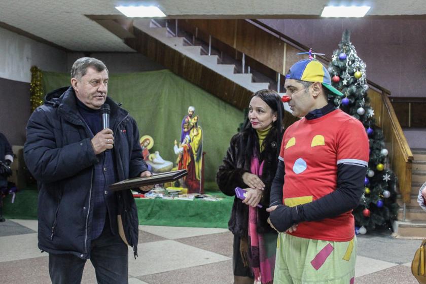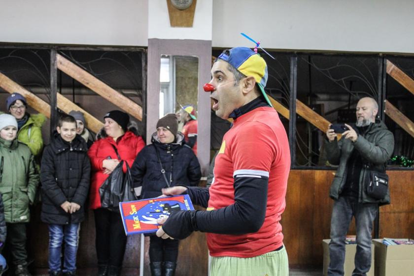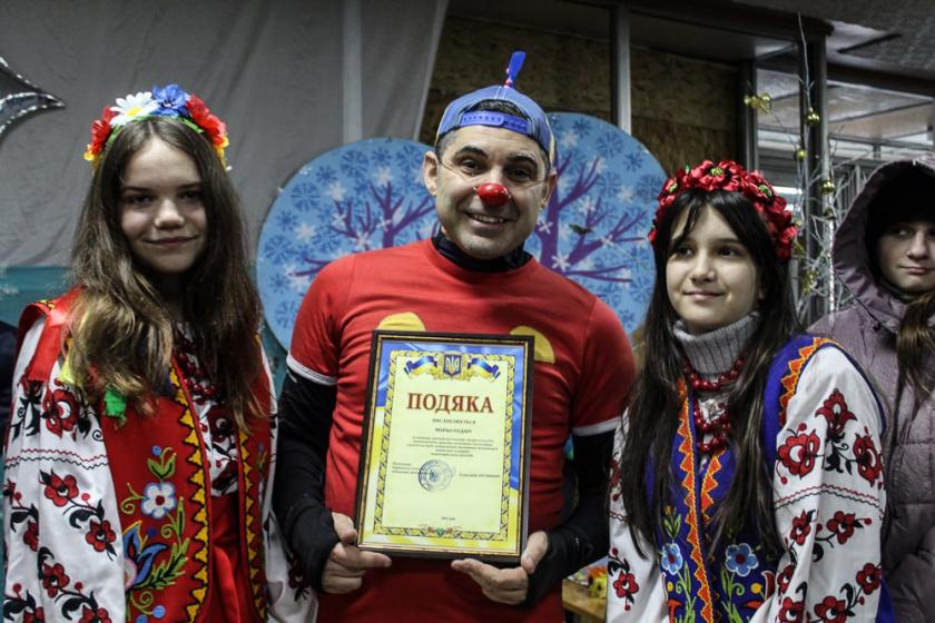 Итальянский клоун раздал детям сладкие подарки и книги. Жители Боровской громады угостили гостя рождественской кутьей, дети спели щедривку и подарили вышитый украинский рушнык и рисунки, в частности из Чиполлино. Начальник Боровской поселковой военной администрации Александр Тертышный вручил Марко Родари благодарность за поддержку детей во время войны.