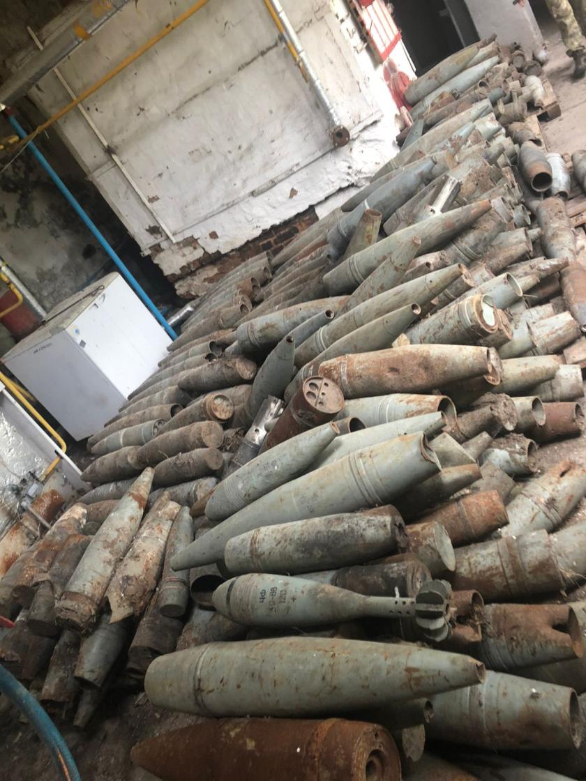 "Свыше полутысячи взрывоопасных предметов — артиллерийских снарядов 152-мм, пушечных снарядов 100-мм, танковых снарядов 125-мм, 120-мм минометных мин враг оставил в помещении котельной образовательного учреждения", — рассказали в Государственной специальной службе транспорта