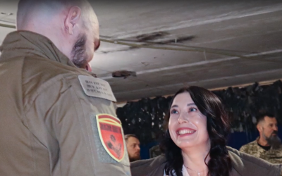 В бригаде в Харьковской области обвенчали бойца и его жену