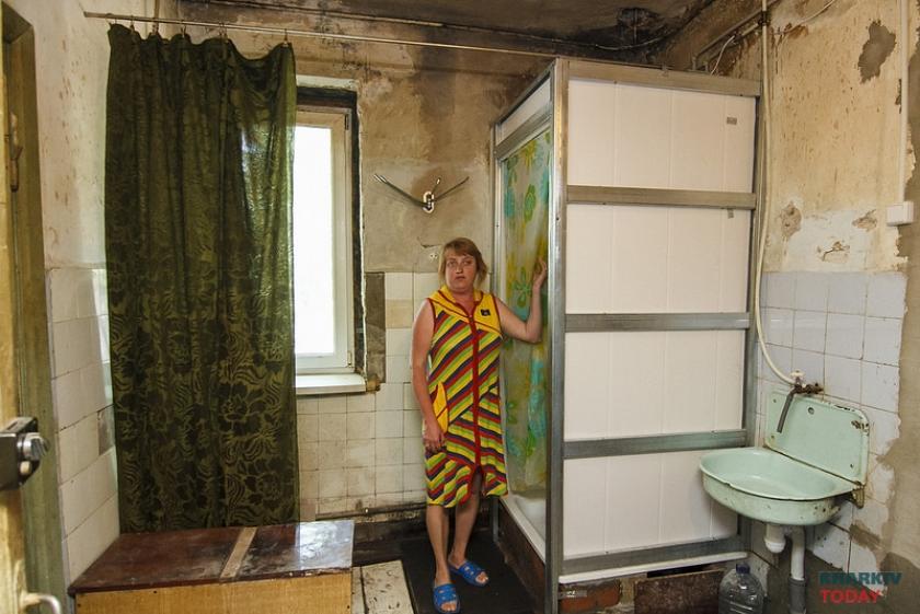 В холле общежития для незрячих чисто – несмотря на завалы из вещей жильцов, которые им больше негде хранить, детских колясок, старых кресел и тазов. Пол здесь моют регулярно – есть график дежурств, стены протирают по очереди, на кухне – относительный порядок, хотя их тут всего четыре на 59 человек. Но все старания обитателей общежития навести в доме маломальский порядок тщетны – по стенам идут метровые трещины, многие из них – сквозные, на стенах почти во всех комнатах и служебных помещениях поселилась черная плесень. Хуже всего, говорят обитатели дома, когда приходит осень и зима – вода ручьями льется с потолка.