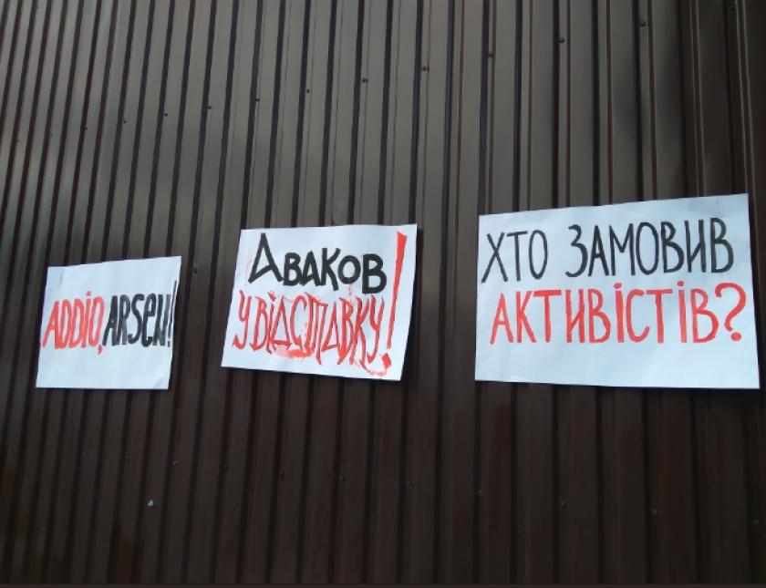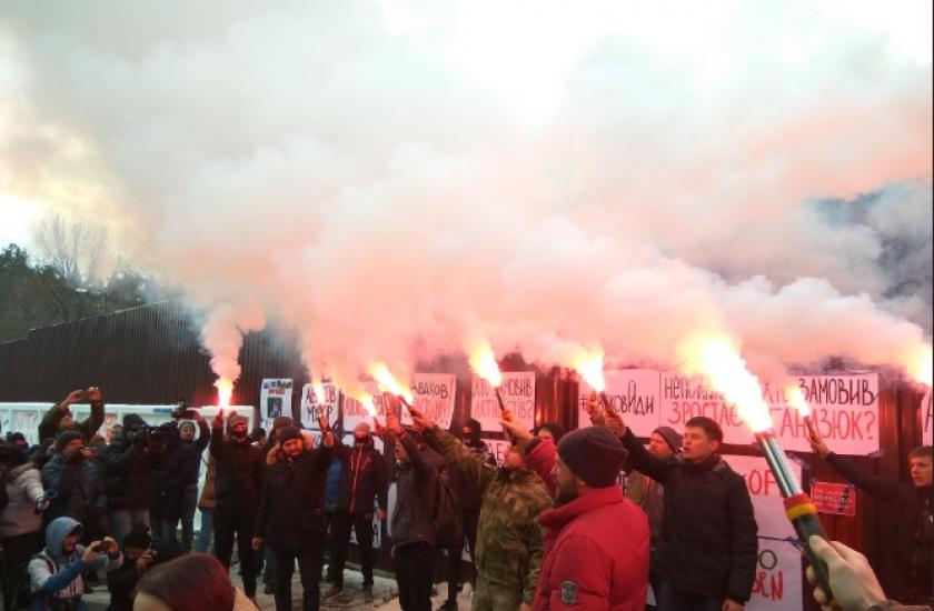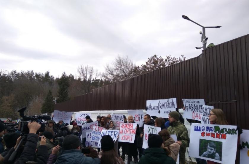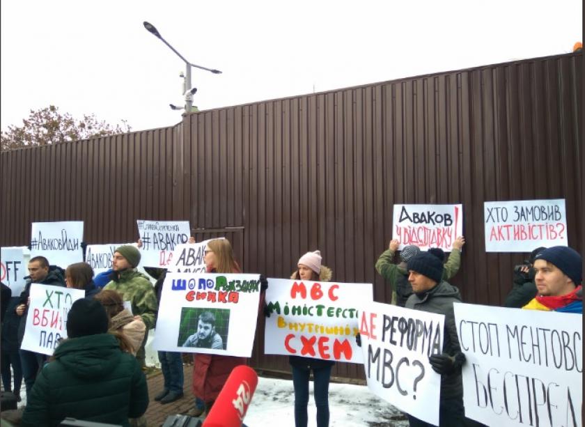 17 ноября несколько десятков активистов устроили акцию в Киеве, возле дома главы МВД Украины Арсена Авакова с требованием его отставки "Аваков, уходи!".