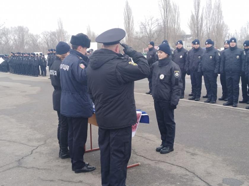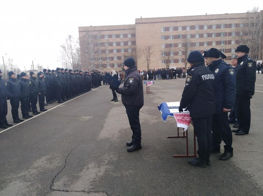 Сегодня на плацу Харьковского университета внутренних дел 150 патрульных приняли присягу на верность Конституции и народу Украины.