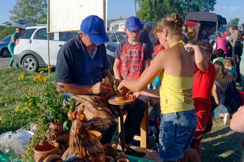 Рядом с музеем расположилась ярмарка народных ремесел. Здесь гости фестиваля могли приобрести сувениры и украшения, выполненные в этнической традиции, попробовать сделать горшок на гончарном круге, расписать пасхальное яйцо в традиционной технике. А также примерить на себя шлем и подержать в руках меч - почти такие же, какими воевали наши предки тысячелетие назад, когда на этих землях жило племя аланов.