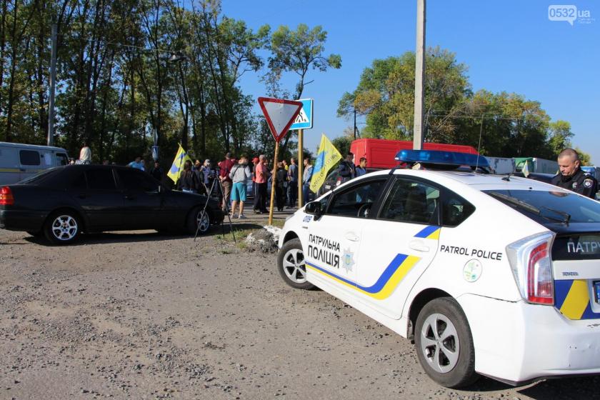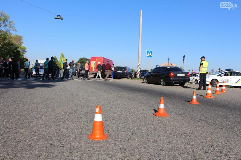 Несколько экипажей патрульной полиции дежурят на месте проведения акции. Они установили на месте блокировки светоотражающие фишки, сообщает 0532.ua