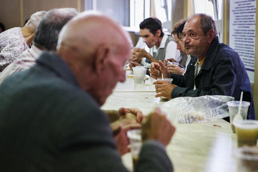 К католическому костелу, что на Гоголя, 4, ежедневно к полудню стекается со всего Харькова около сотни скромно одетых людей. Это бездомные и старики, чьих пенсий катастрофически не хватает даже на еду. В социальном центре, работающем при Кафедральном соборе Успения Пресвятой Девы Марии, они получают горячий обед и медицинскую помощь, могут принять душ, постирать вещи.
