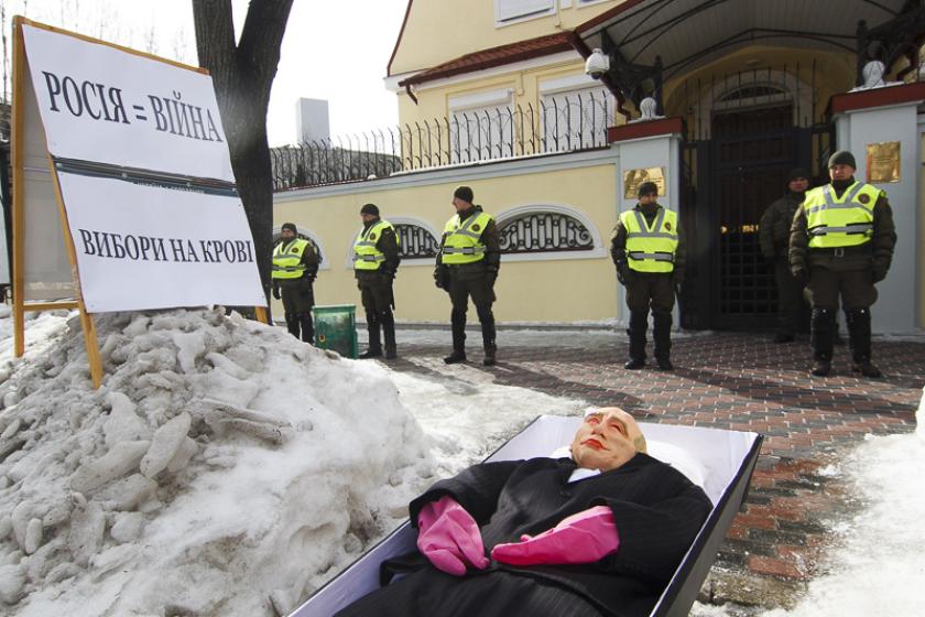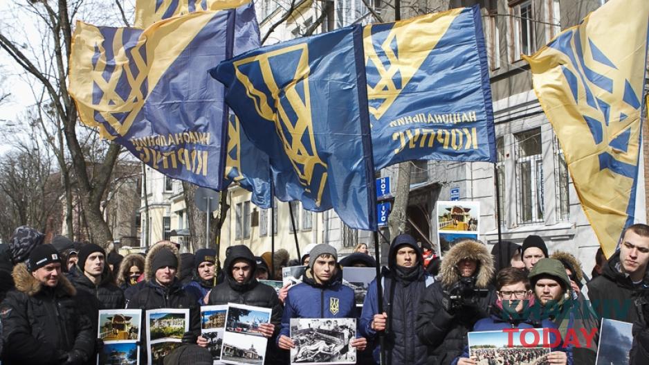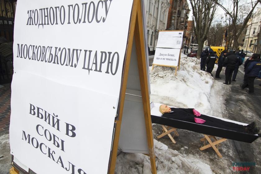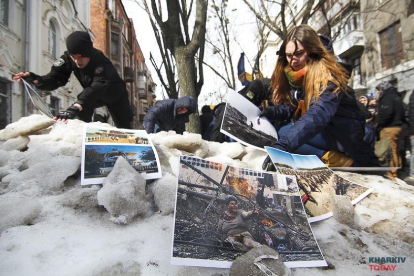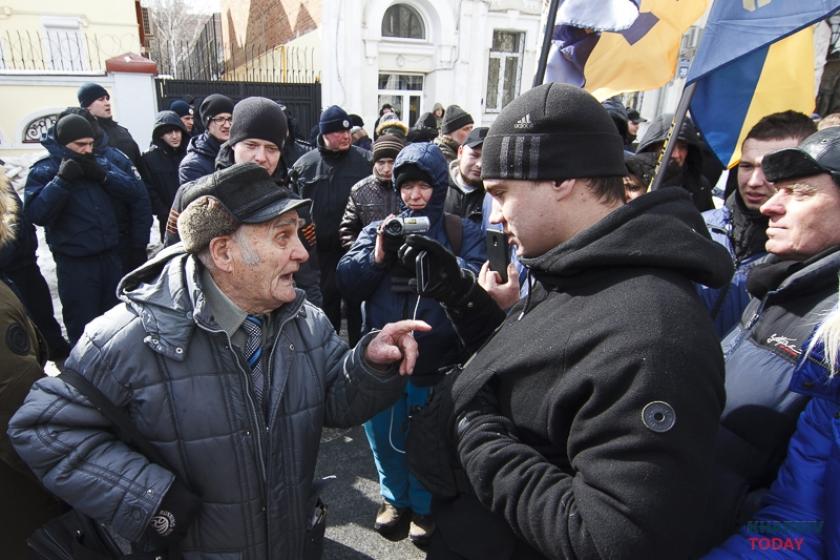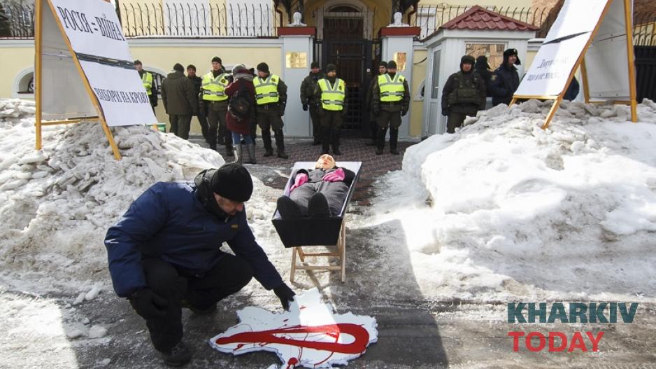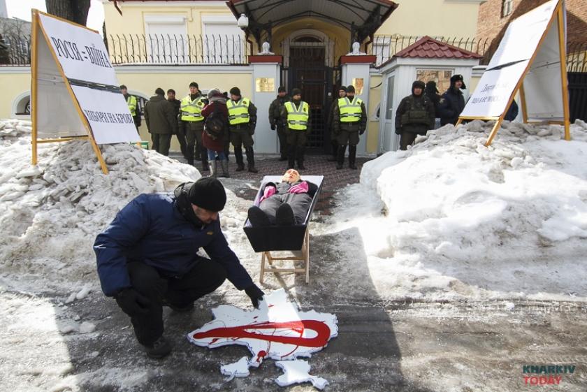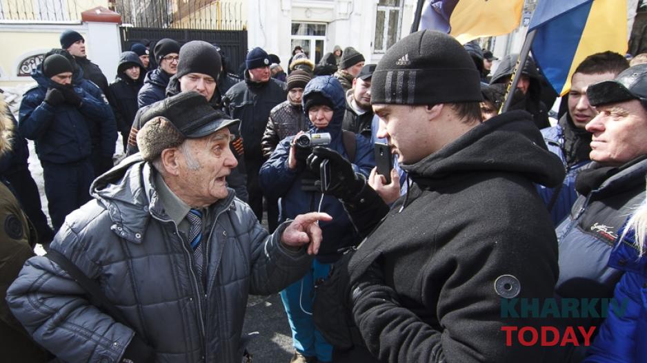 В воскресенье, 18 марта, в день выборов президента в России националисты блокируют генкосульство РФ в Харькове. Фотограф KHARKIV Today побывал на акции.