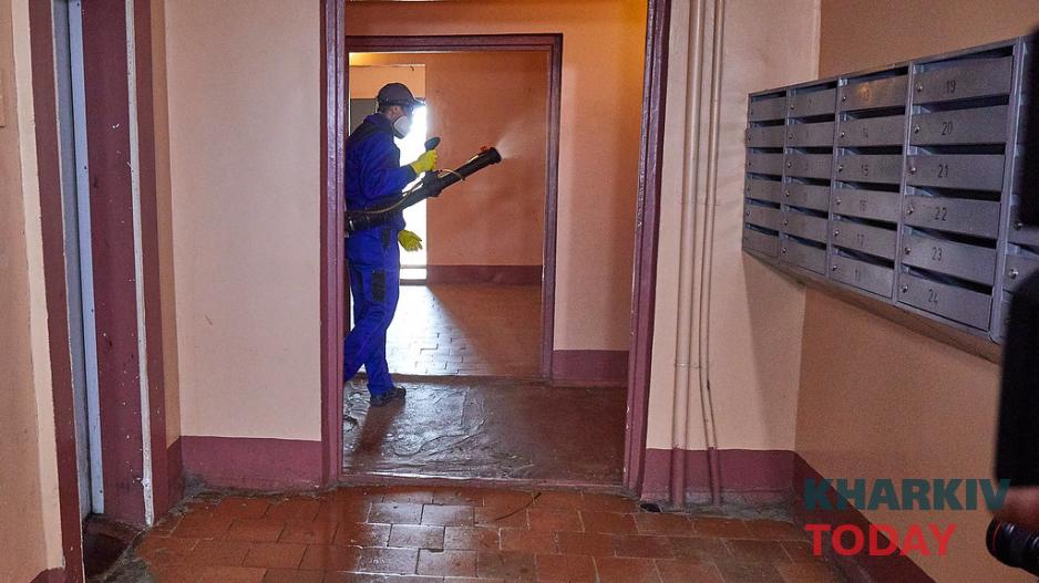 Как в Харькове дезинфицируют подъезды из-за коронавируса