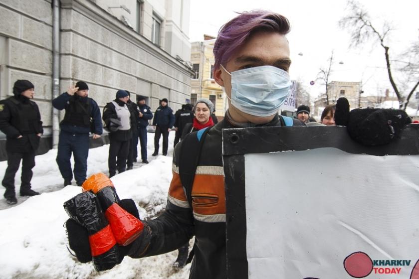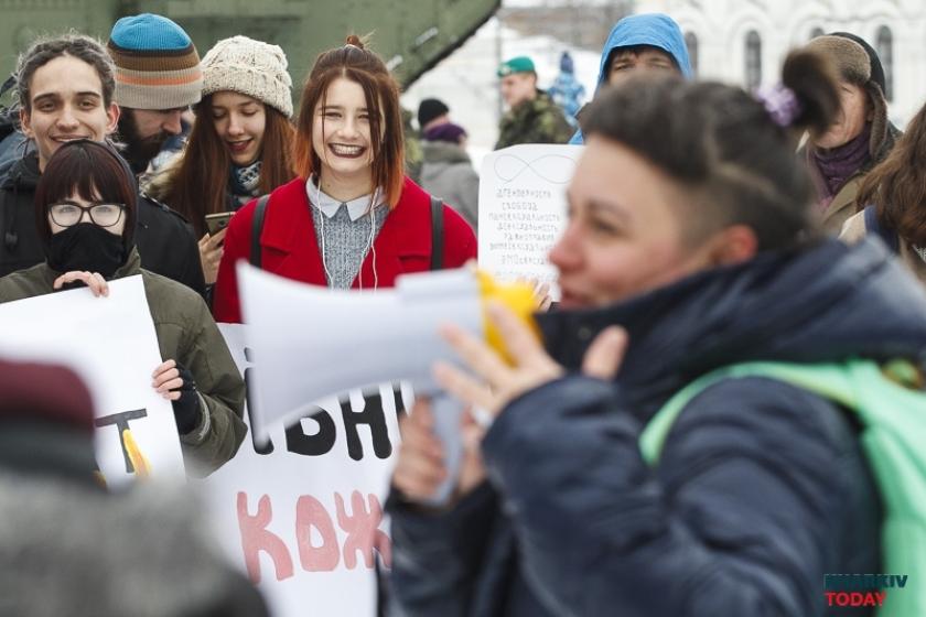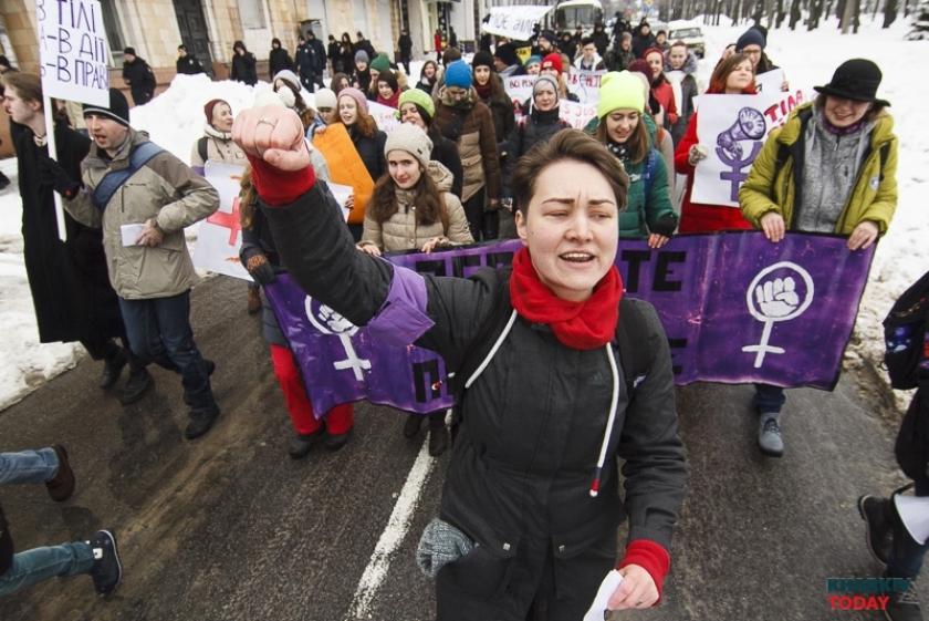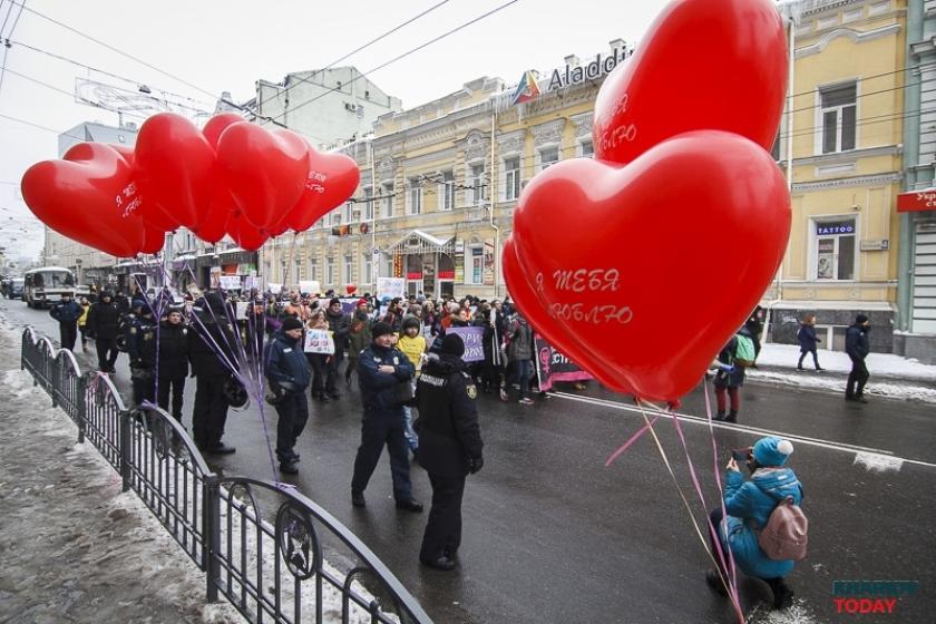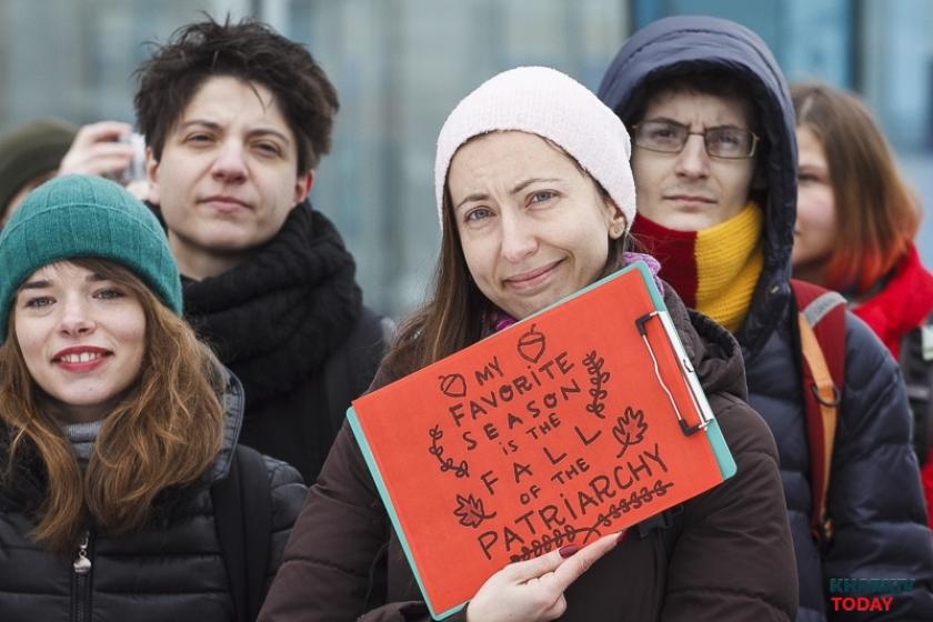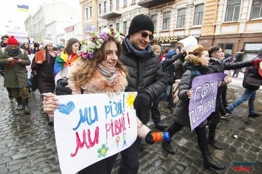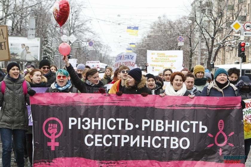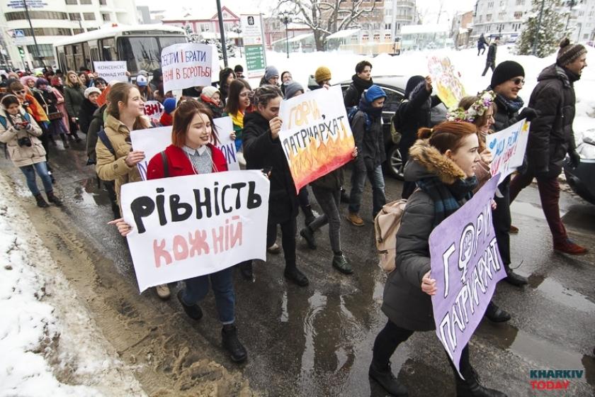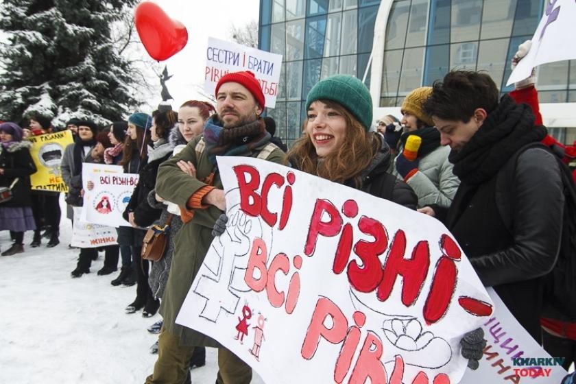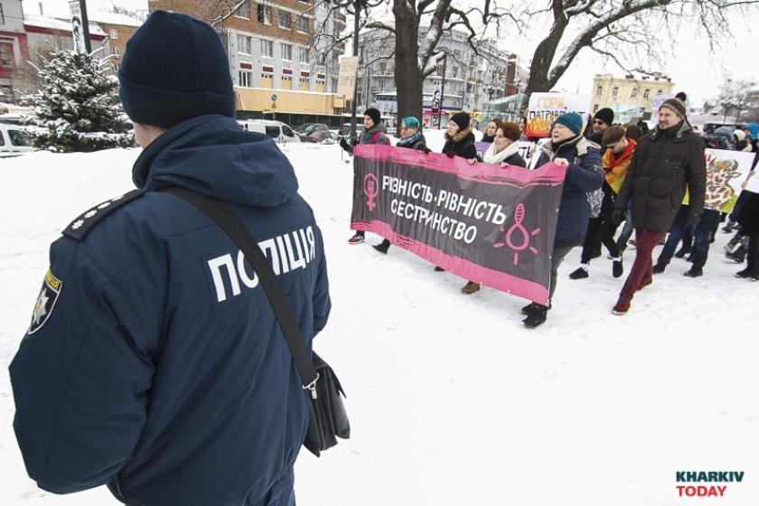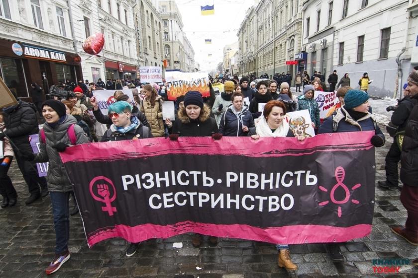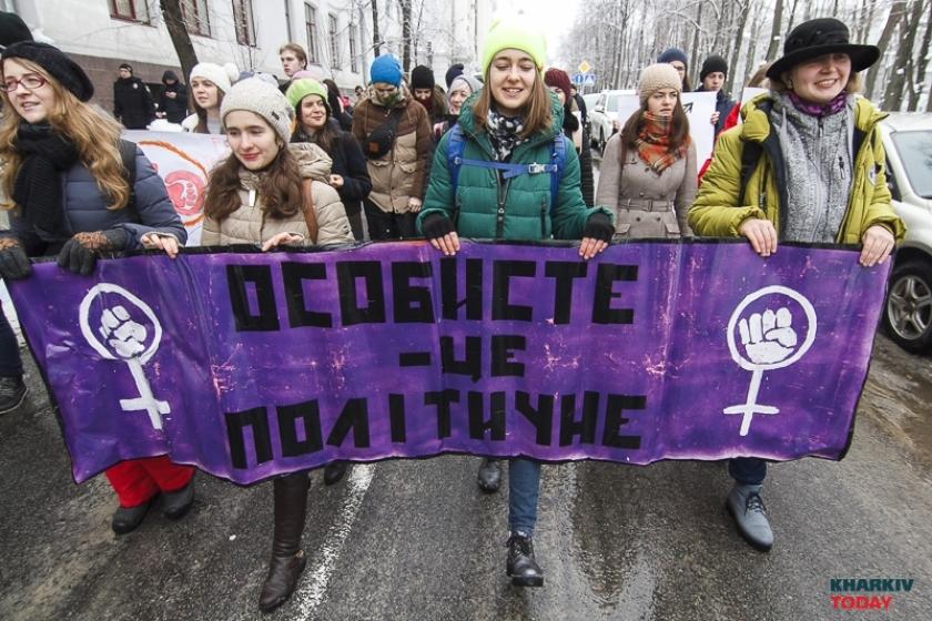 В Международный женский день, 8 марта, в Харькове около 50 активистов, собрались на марш женской солидарности.