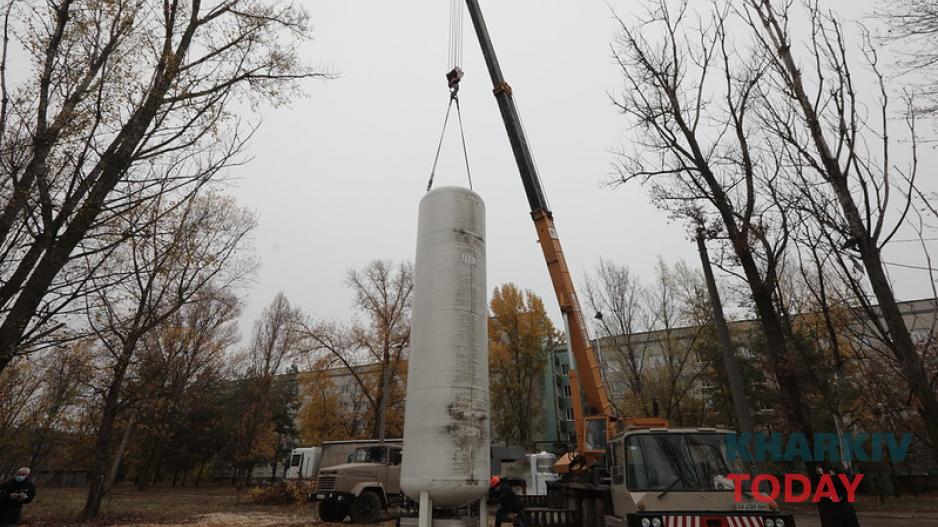 5 ноября на территории 22-й инфекционной больницы установили бочку емкостью 20 000 литров для кислорода. Ее привезли на грузовом автомобиле, выгрузили с помощью двух кранов и установили на ранее подготовленную бетонную площадку.