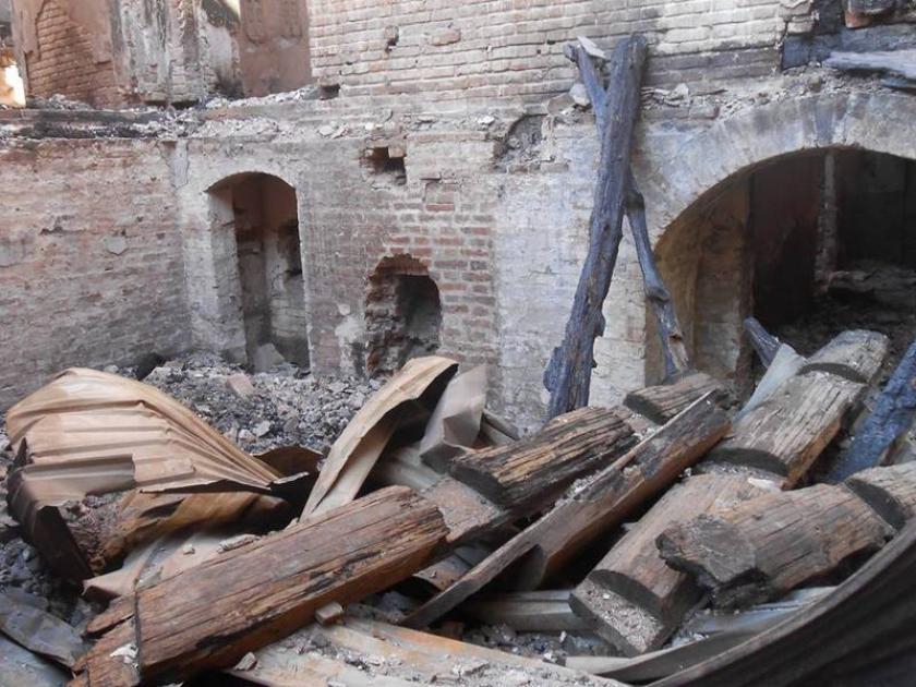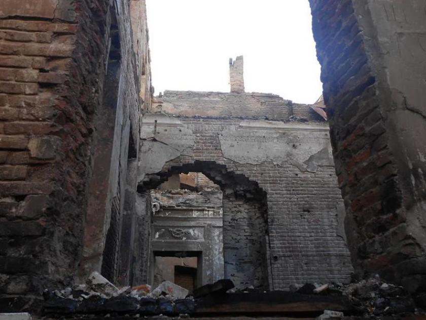 В соцсетях опубликовали фото останков сгоревшего на неделе крупного памятника архитектуры Харьковской области -усадьбы Шидловских.