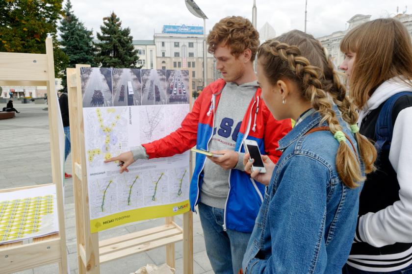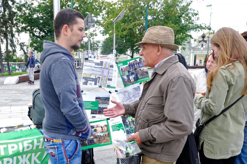 В рамках Европейской недели мобильности на площади Конституции в Харькове была развернута выставка городских проектов "Кульбаба", где люди могли не только ознакомиться с предлагаемыми проектами, но и пообщаться с их авторами.