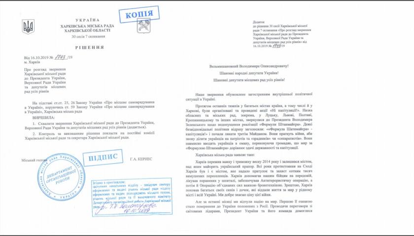 Харьковский горсовет поддержал Зеленского и "формулу Штайнмайера"