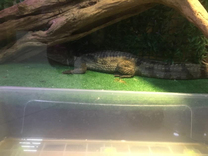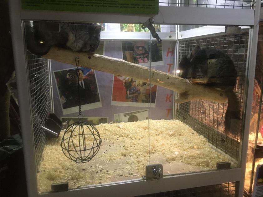 Всех животных здесь, за исключением крокодила, можно потрогать, подержать или погладить. На первый взгляд, обитатели небольшого зверинца живут в чистоте и довольны условиями. Как рассказал нам сотрудник зоопарка Артем, коллекция принадлежит человеку, который покупал животных в качестве хобби, а когда содержать их стало не по карману, решил создать контактный зоопарк. Только Симба за день съедает 3,5 килограмма мяса.
