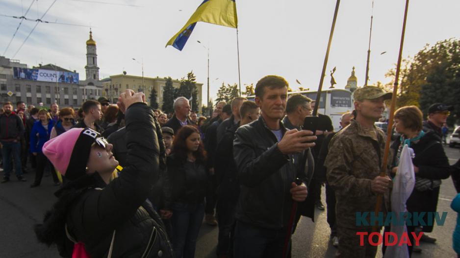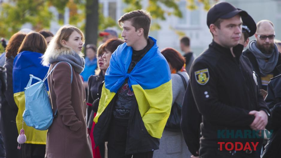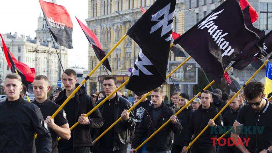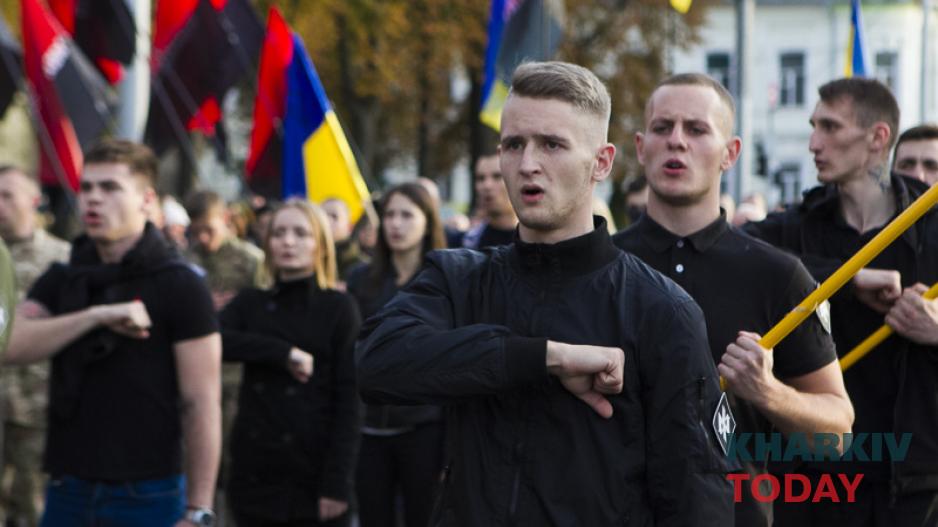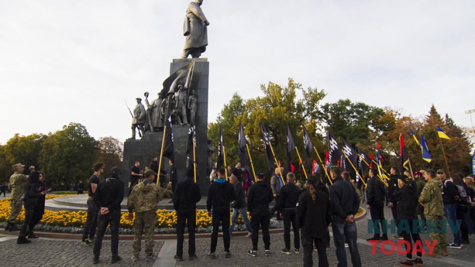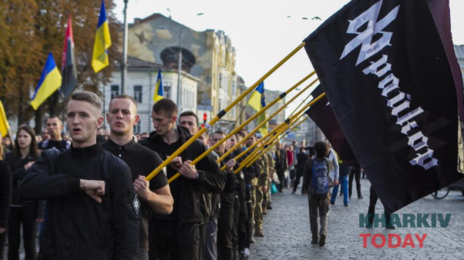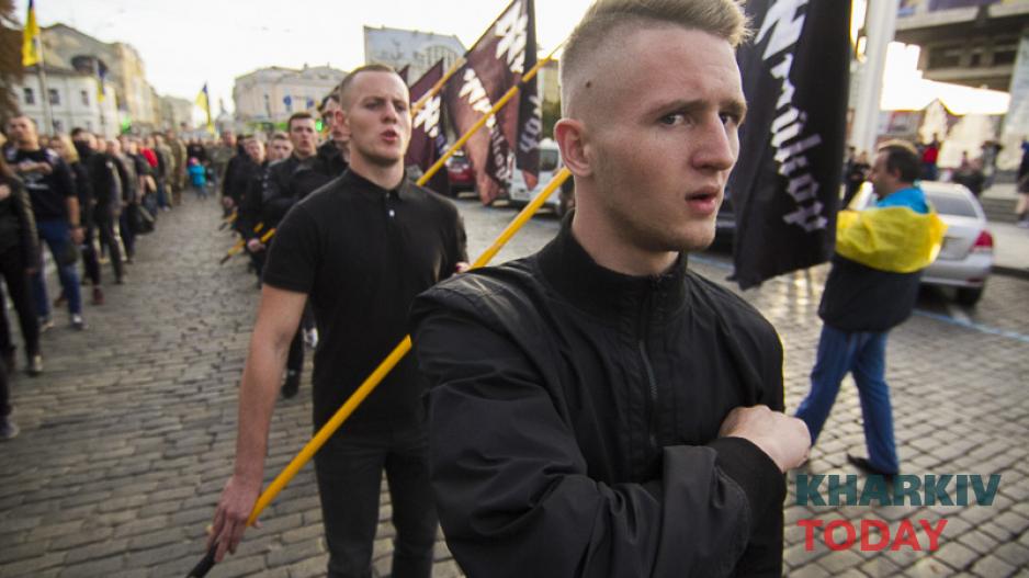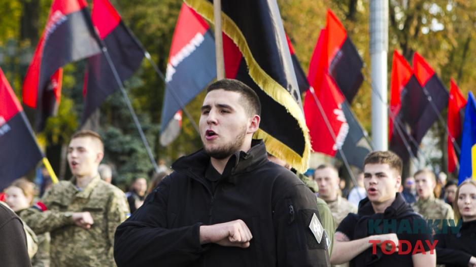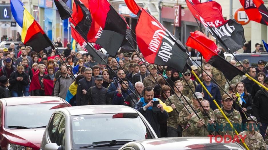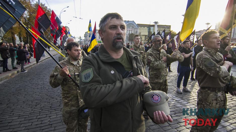 14 октября, в День Защитника Украины, Украинского казачества и создания УПА, представители правых организаций прошлись маршем по центру Харькова. Шествие началось в 16 часов на площади Конституции - там собралось больше сотни участников с флагами, в основном - члены организаций "Правый сектор" и "Фрайкор". Они двинулись по Сумской под барабанную дробь. Полицейские перекрыли улицу и сопровождали колонну.