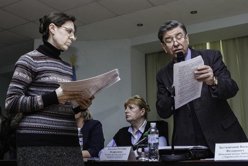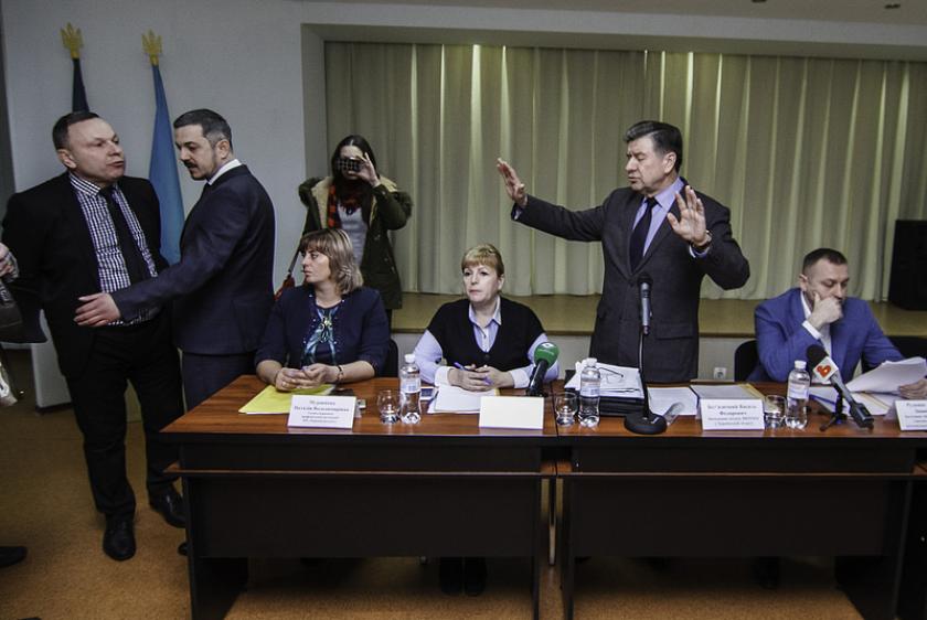 По словам члена правления Харьковского антикоррупционного центра Евгения Лисичкина, пройти собравшимся харьковчанам на открытые слушания помогли ветераны АТО.