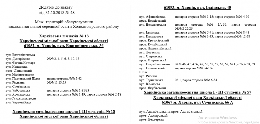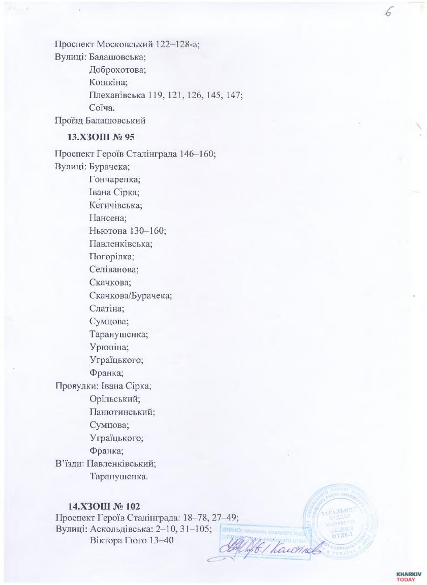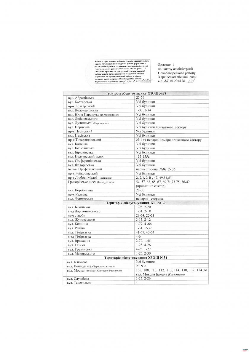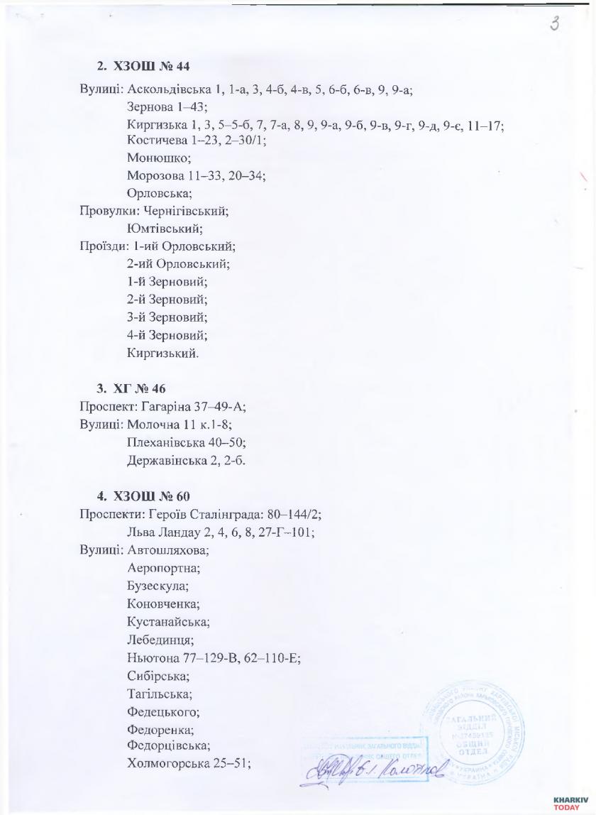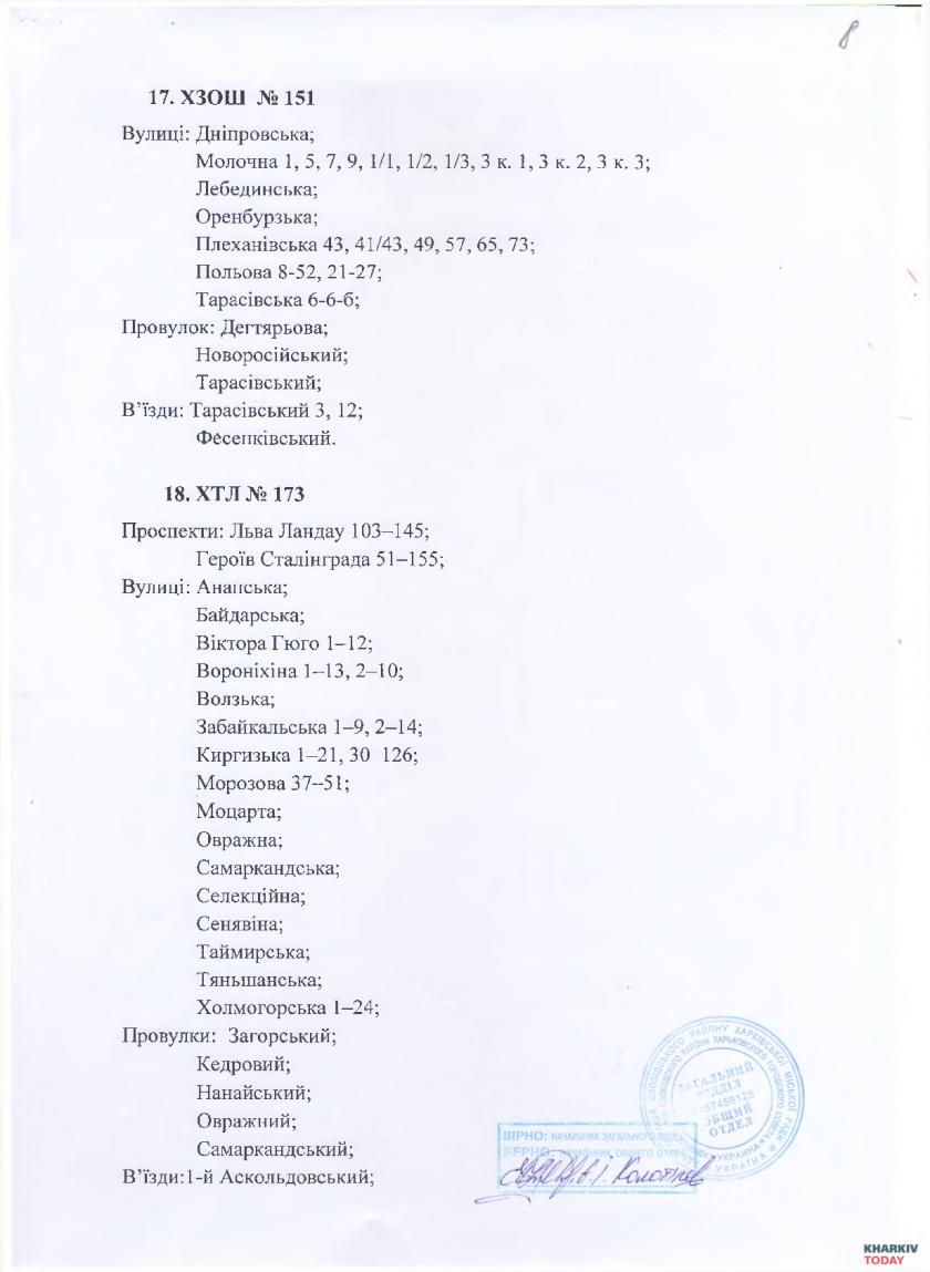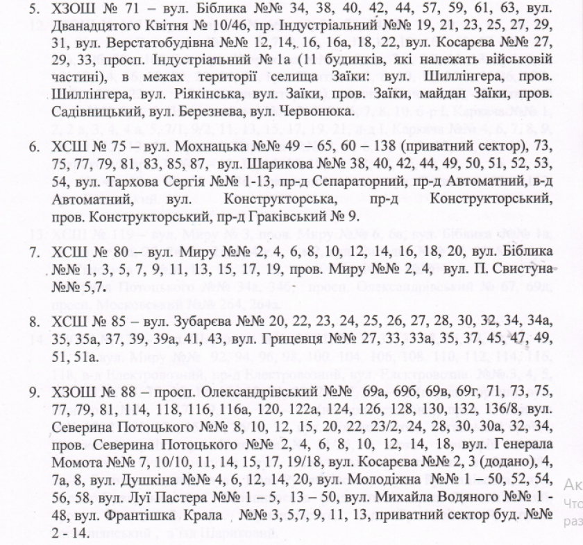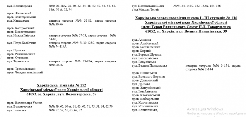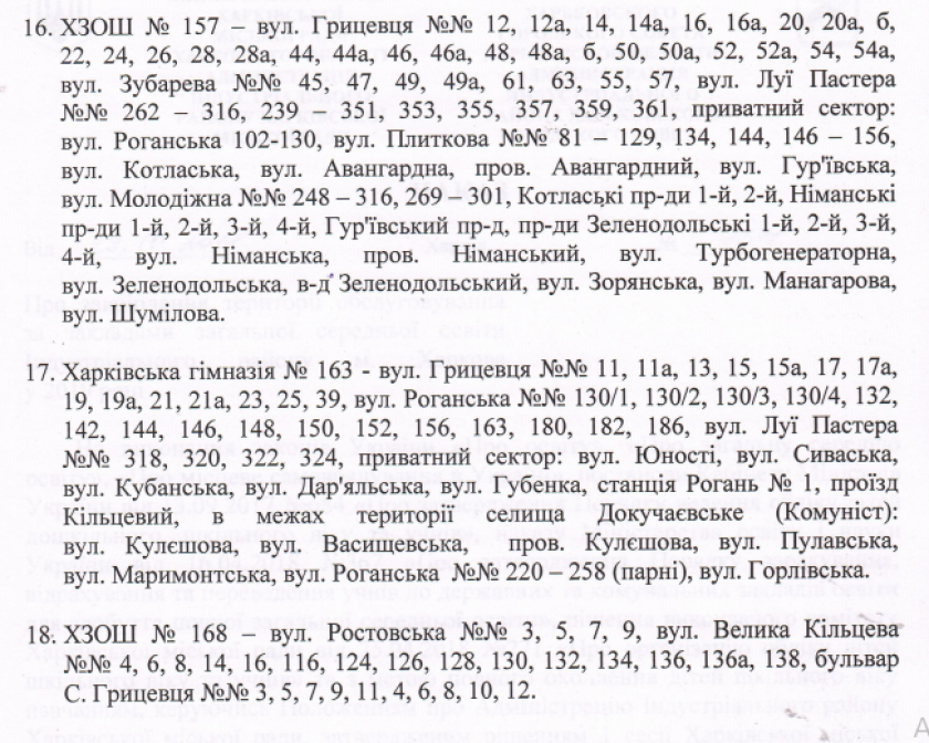 Полный перечень школ Харькова и территорий, закрепленных за ними.
