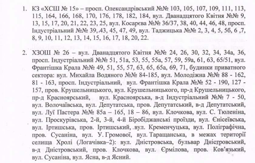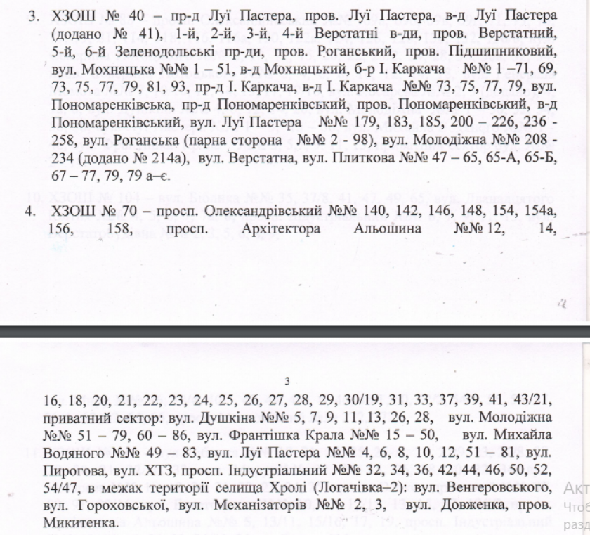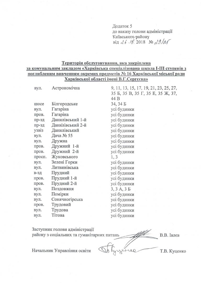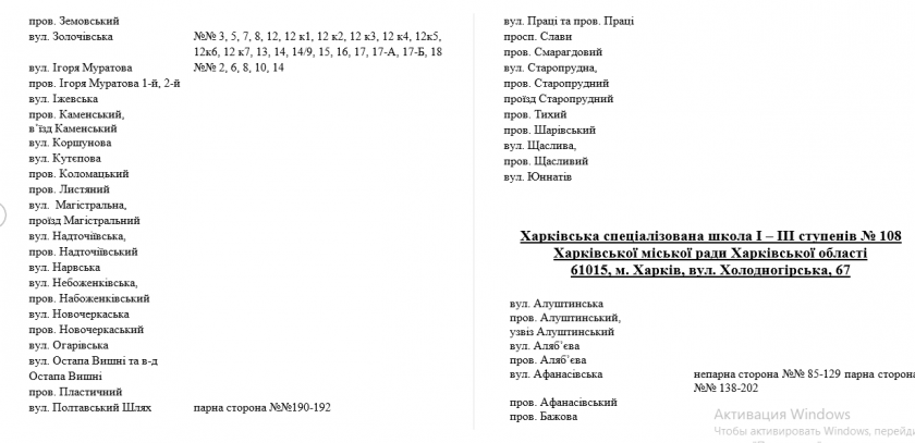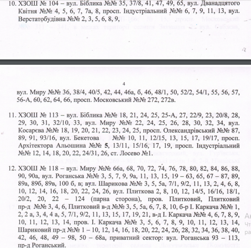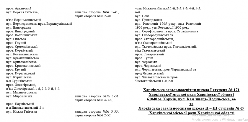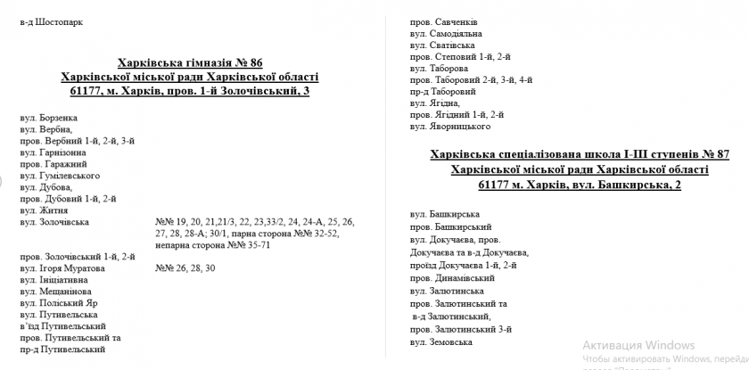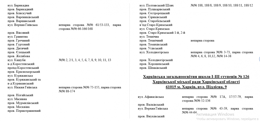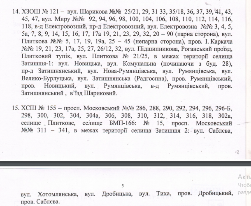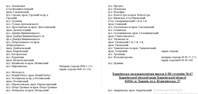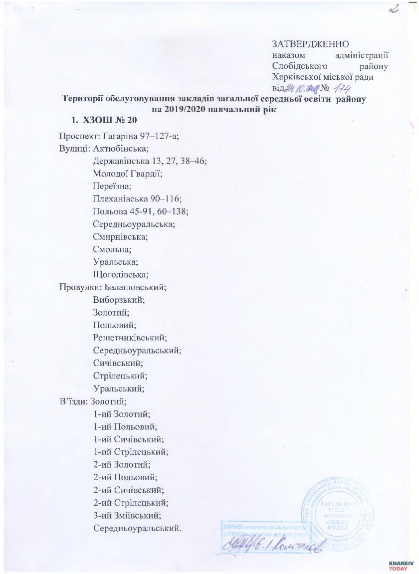 Полный перечень школ Харькова и территорий, закрепленных за ними.