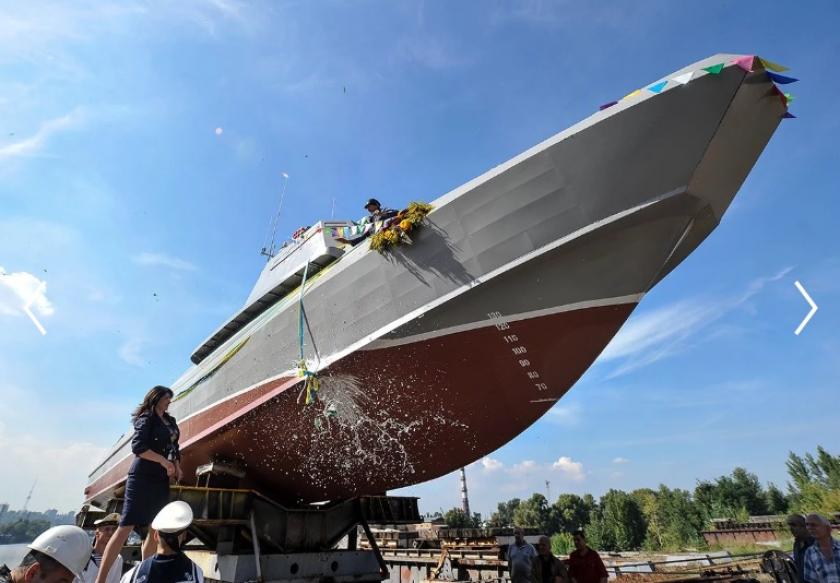 Секретарь Совета национальной безопасности и обороны Украины Александр Турчинов принял участие в церемонии спуска на воду первого из серии десантно-штурмового катера проекта 58503 "Кентавр".