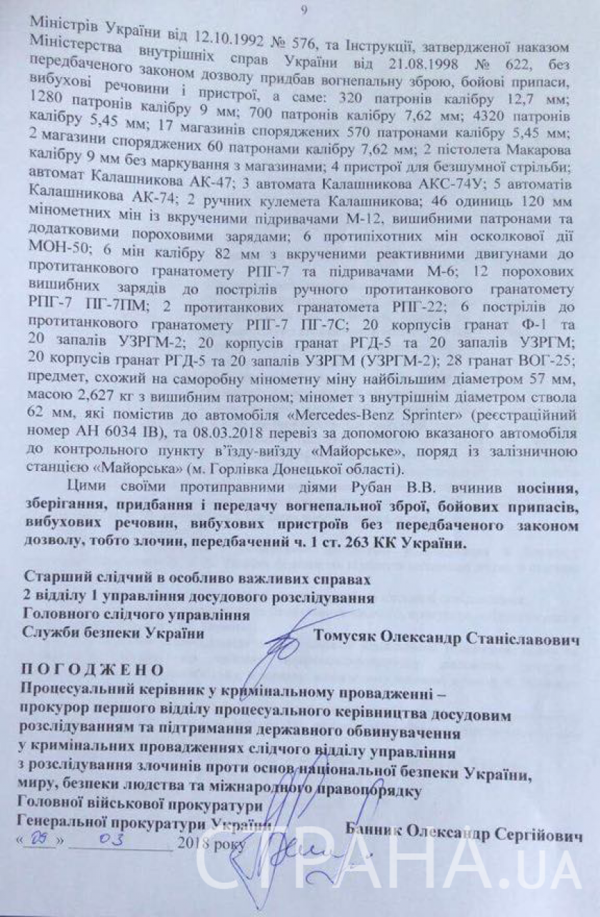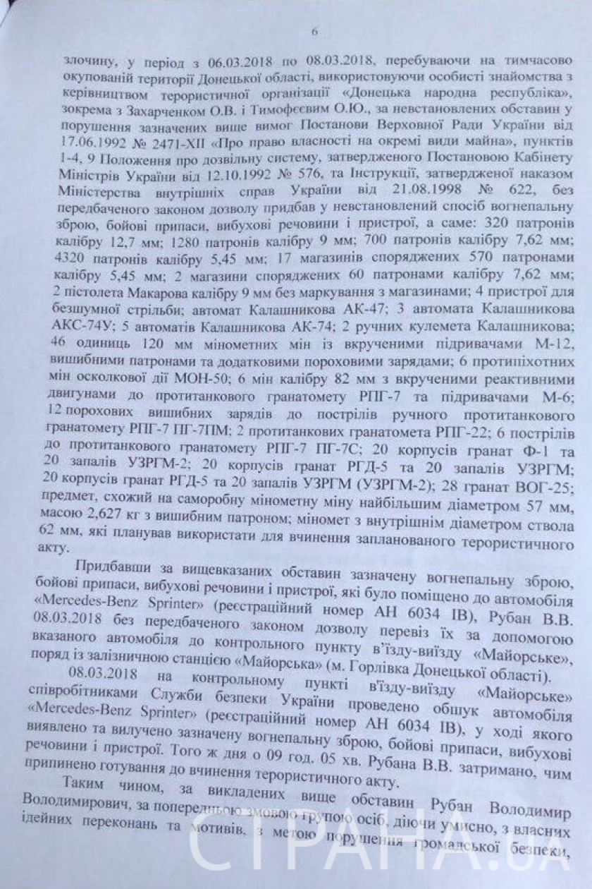 В распоряжении журналистов оказался текст сообщения о подозрении, которое собираются выдвинуть Рубану.