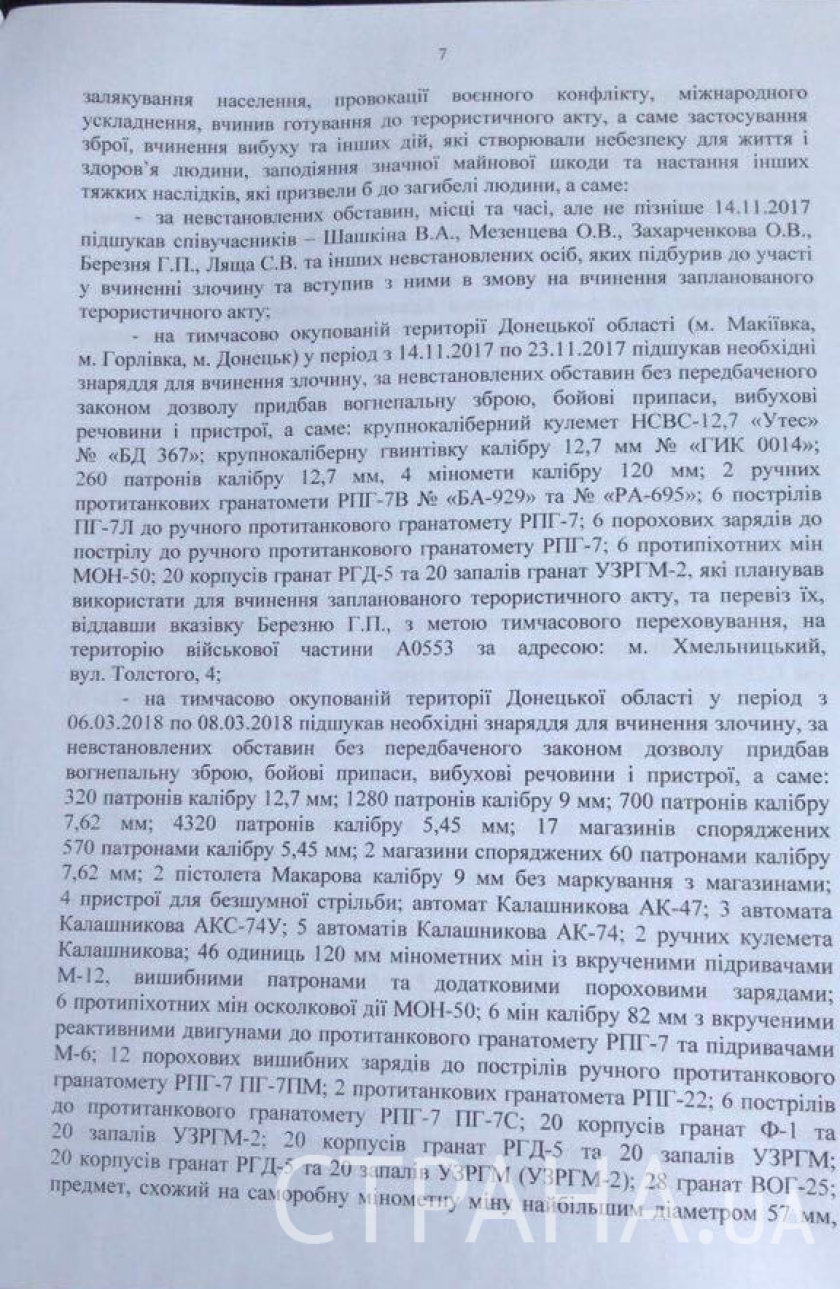 "С целью убийства Президента Украины, руководителей силовых структур, государственных деятелей и работников правоохранительных органов, убийства большого количества людей, создания "состояния хаоса" для дестабилизации обстановки в государстве, уничтожения большого количества домов и инфраструктуры в "Правительственном квартале" решил совершить террористический акт - из минометов и гранатометов обстрелять здание Верховной Рады, Администрации Президента и жилых домов, которые находятся в квартале, произвести взрывы внутри Верховной Рады...", - говорится в тексте, опубликованном на "Страна.ua".