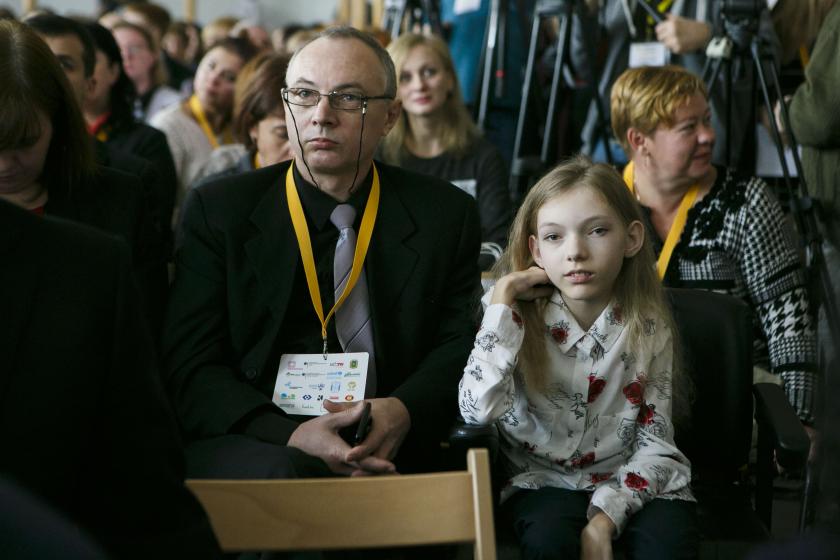 11.12 Форум «Учимся жить вместе» начался с видео-презентации мам детей с особенными потребностями. Мария Унтина - у нее дочь с синдромом Дауна, и Евгения Русакова, у которой сын с гомоцистоинемией, были героями проекта "Харьковской недели" "Право на жизнь".