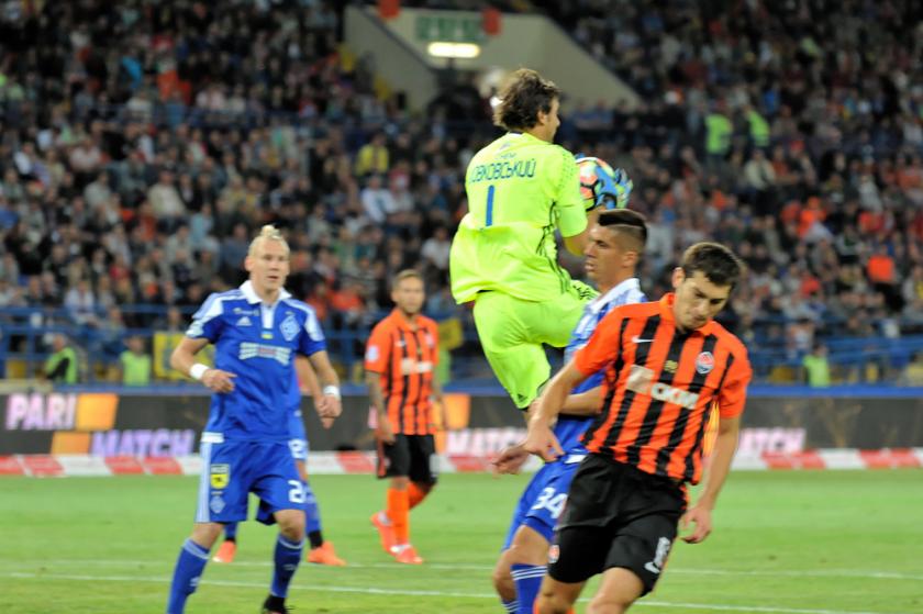 Первый гол в матче забил на 24-й минуте с пенальти динамовец Олег Гусев - после того, как Дарио Срна сбил в штрафной площадке Евгения Макаренко. После этого "Шахтер" увеличил натиск на ворота динамовцев, но до перерыва так и не смог изменить счет.