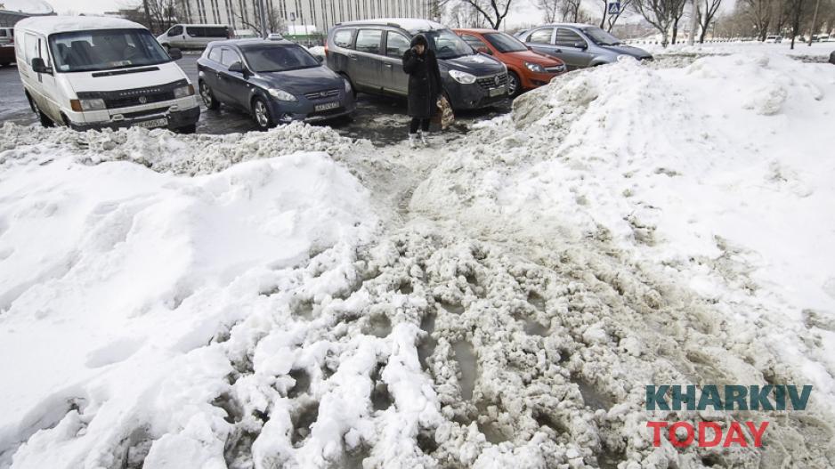 С приходом весны харьковчанам стало сложнее добираться на работу или учебу, спустя пять дней после снегопадов в городе есть участки, где ни проехать, ни пройти.