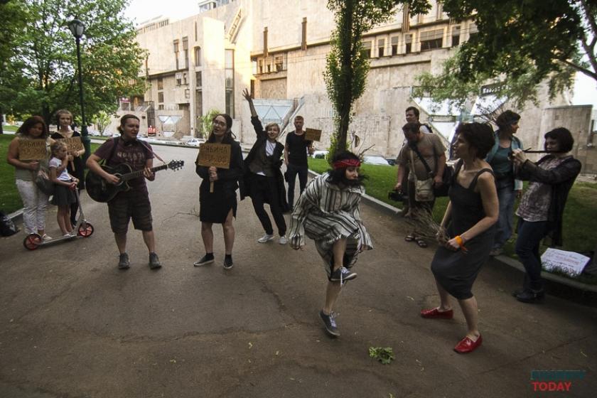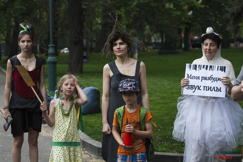 Эконцерт прошел вечером 8 мая. Люди собрались за оперным театром, чтобы "помянуть" деревья, которые недавно были вырублены здесь. По словам организаторов, концерт выражает отношение его участников к вырубке части сада за оперным театром.