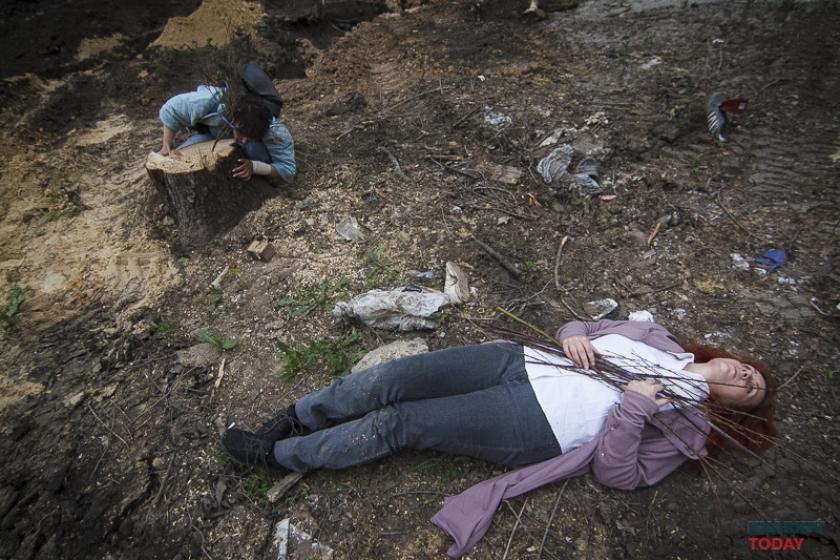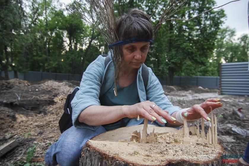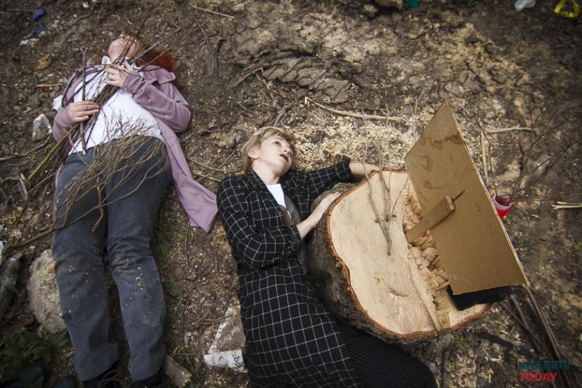"Собственно обнаружение поляны пеньков вдохновило актеров и музыкантов на траурную церемонию, полную громких песен, веселья, плясок, непонятной музыки, графоманских стихов и странных перформансов. Уповая на то, что после шествия с ветками в руках и ритуального танца с пилами, деревья вскоре прирастут обратно к пенькам. Годы жизни деревьев на табличках указаны приближенно (имеется ввиду дата высадки саженца в Университетском саду)", - говорят организаторы.
