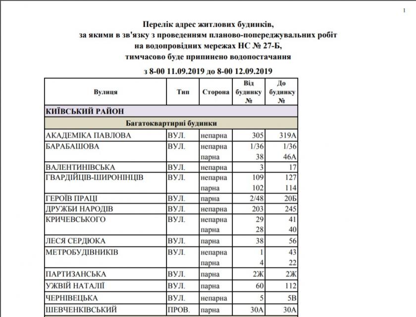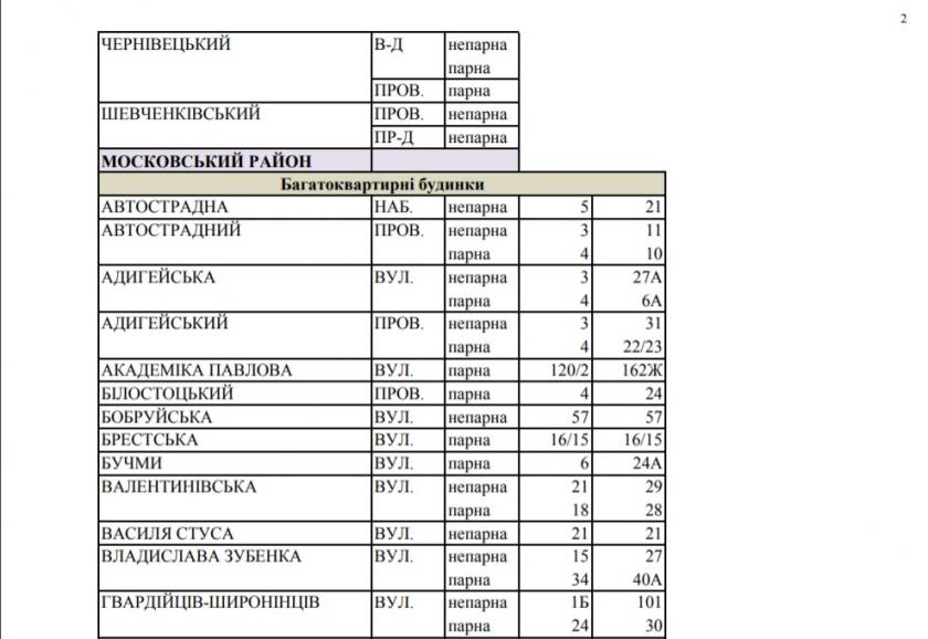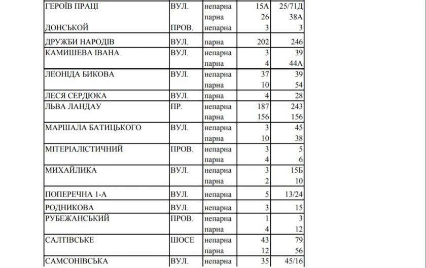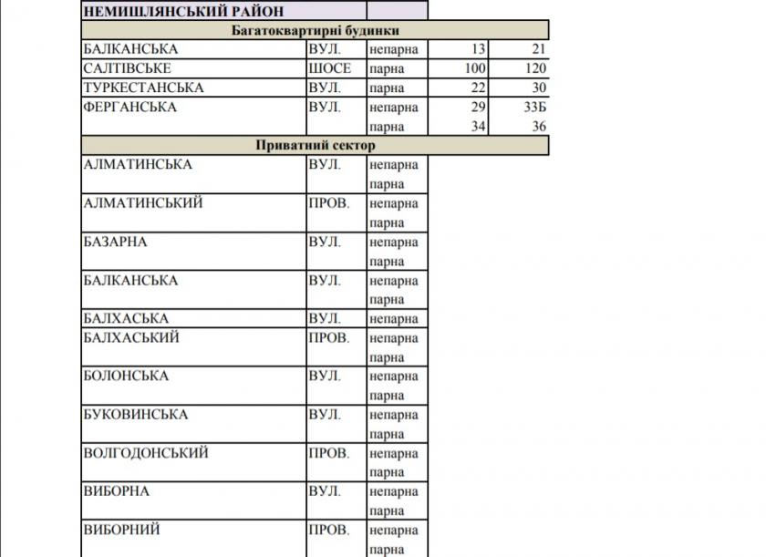 Воды не будет в части Московского, Киевского и Немышлянского районов, ограниченной ул. Натальи Ужвий, ул. Леся Сердюка, ул. Горянской, пер. Дивногорским, территориями торговых комплексов "Дафи" и "Караван", ул. Академика Барабашова, поселком Шевченки, рекой Харьков, ул. Амурской, ул. Академика Павлова, пер. Салтовским, ул. Евгеньевской, пр. Льва Ландау, ул. Халтурина, ул. Краснодарской, пр. Тракторостроителей, ул. Владислава Зубенко, ул. Гвардейцев Широнинцев, ул. Метростроителей.