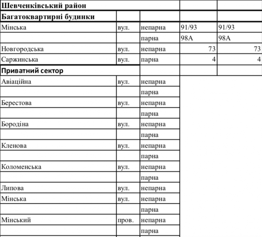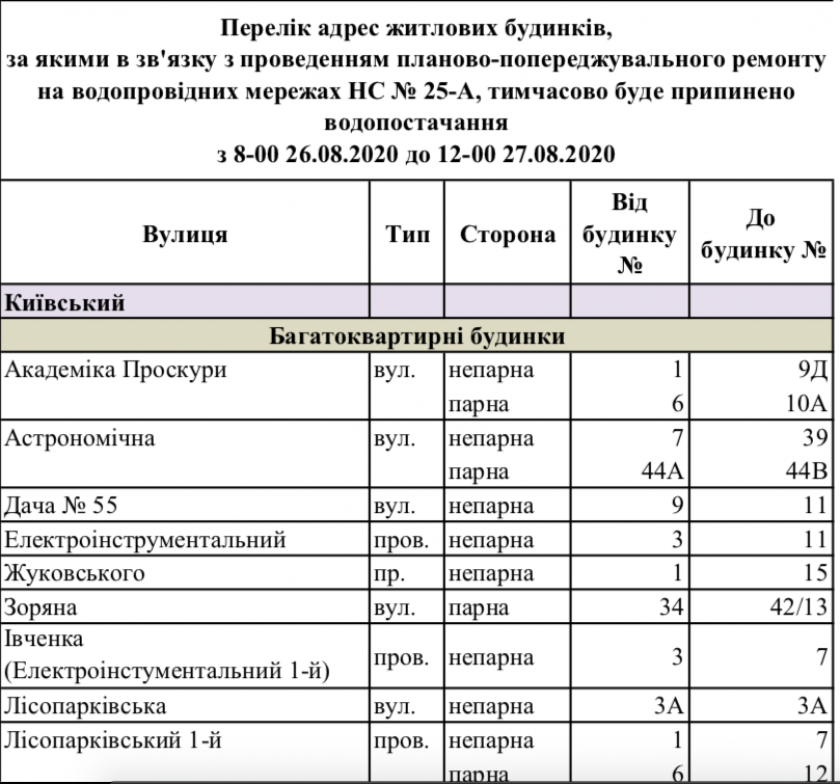С полным перечнем адресов, где не будет воды, можно ознакомиться по фото ниже: