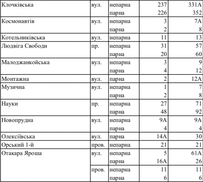 - в части Шевченковского района, ограниченной рекой Лопань, окружной дорогой до пос. Пятихатки, территорией Лесопарка, Белгородским шоссе, территорией Центрального парка культуры и отдыха им. Горького, ул. Отакара Яроша, ул. Семена Кузнеца, ул. Полярной, ул. Джанкойской, 1-м въездом Дорошенковским;
