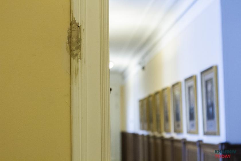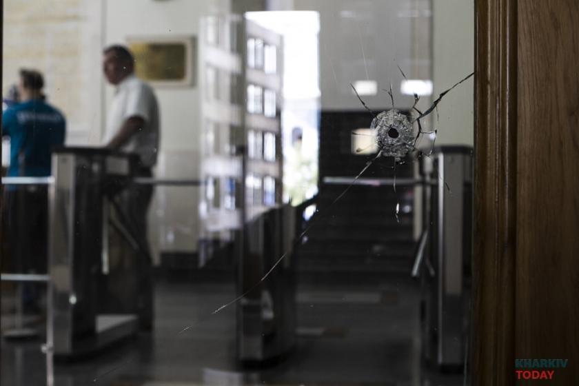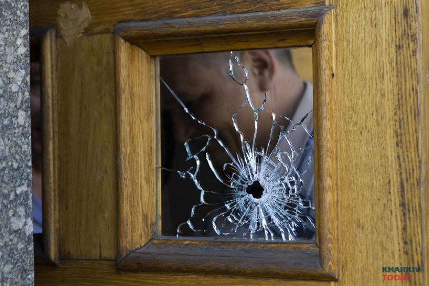 Имущество мэрии от стрельбы пострадало незначительно. Повреждены оконные стекла и двери на первом этаже, стена на втором этаже.