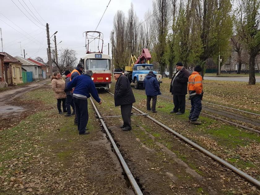 В Харькове ремонтный трамвай сошел с рельсов