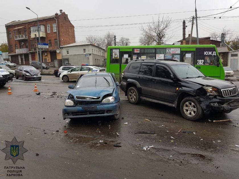 Сегодня, 10 ноября, на Полтавском шляху, 86, столкнулись автомобили Daewoo, Toyota Land Cruiser и Daewoo Lanos, в результате чего двоих водителей увезла скорая помощь.