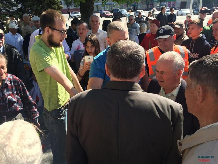 Активисты заявили, что увидели у митингующих запрещенную символику. Завязалась словесная перепалка. «Комуняку на Гиляку» - «а Бандеру в сраку»- стороны обменялись комплиментами.
