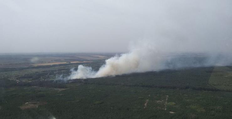 Пожар на территории Чемужевского лесничества в Змиевском районе тушат с вертолета.