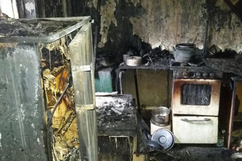 Площадь пожара составила 15 кв.м. Возгорание возникло в коридоре, который был обшит горючим пластиком. Затем огонь перекинулся на помещение кухни и охватил мебель.