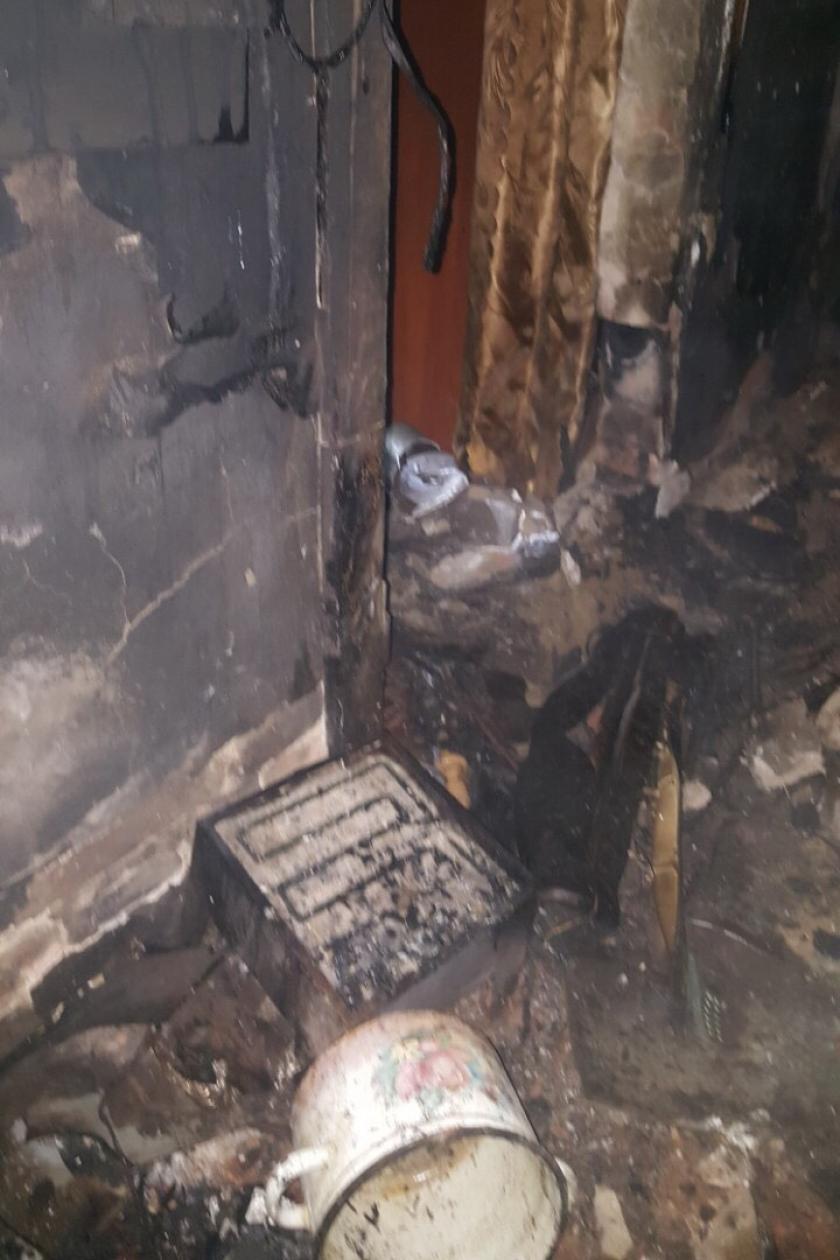 Сообщение о пожаре поступило в службу спасения 7 декабря в 6.03. К месту происшествия выехали два отделения 5-й пожарно-спасательной части ГСЧС. Прибыв на мест, пожарные установили, что в одной из комнат горела деревянная перегородка и домашние вещи. Площадь пожара составила 10 кв.м, сообщили в ГСЧС.