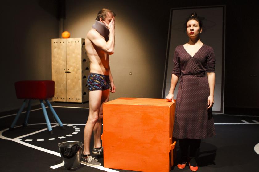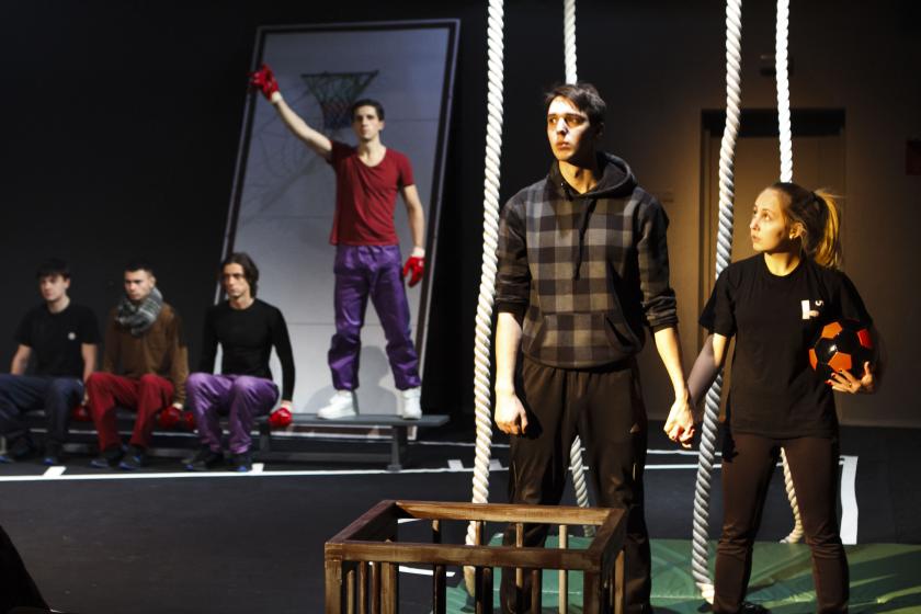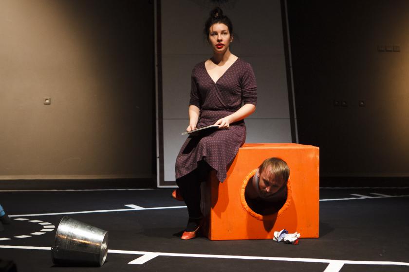 В театре Пушкина прошла репетиция абсурдного спектакля «Гимнастический козел»