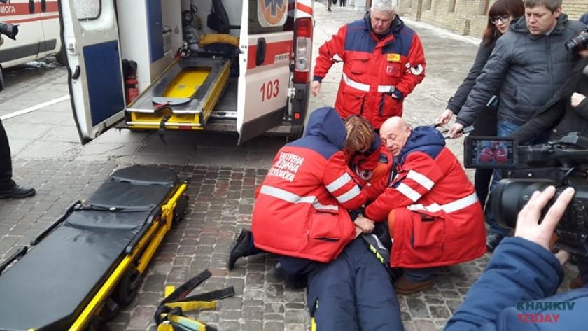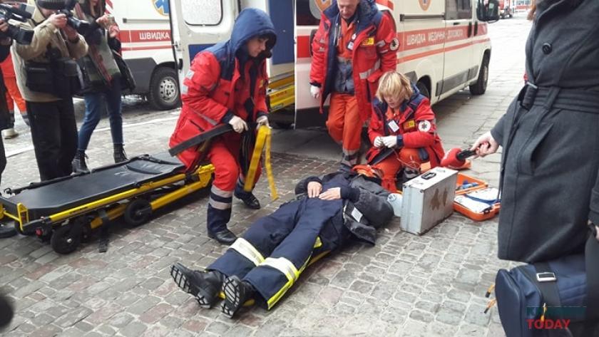 К 8.00 к зданию ТРЦ прибыли 5 пожарно-спасательных отделений, патрульные, три кареты скорой помощи, одна автолестница и 60 курсантов Национального университета гражданской защиты. Спасатели эвакуировали людей из зала кинотеатра по пожарным лестницам. Их в торговом центре три. Несколько человек на этаже все-таки остались и не смогли самостоятельно покинуть помещение. Их пожарные снимали с помощью лестницы. Один человек в результате возгорания "пострадал". Его медики "госпитализировали" в больницу.