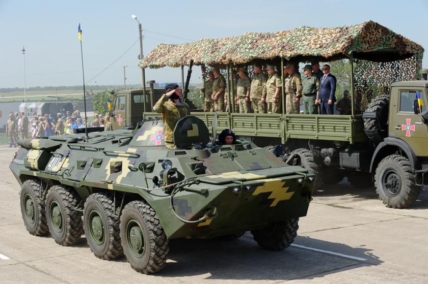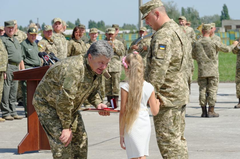 Сегодня президент Украины Петр Порошенко на аэродроме в Чугуеве (Харьковская область) передал украинским бойцам вооружение и военную технику.